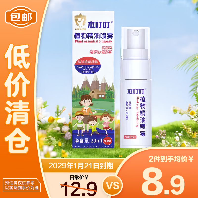 本叮叮植物精油驱蚊喷雾20ml无毒家用室内消肿止痒儿童蚊虫叮咬