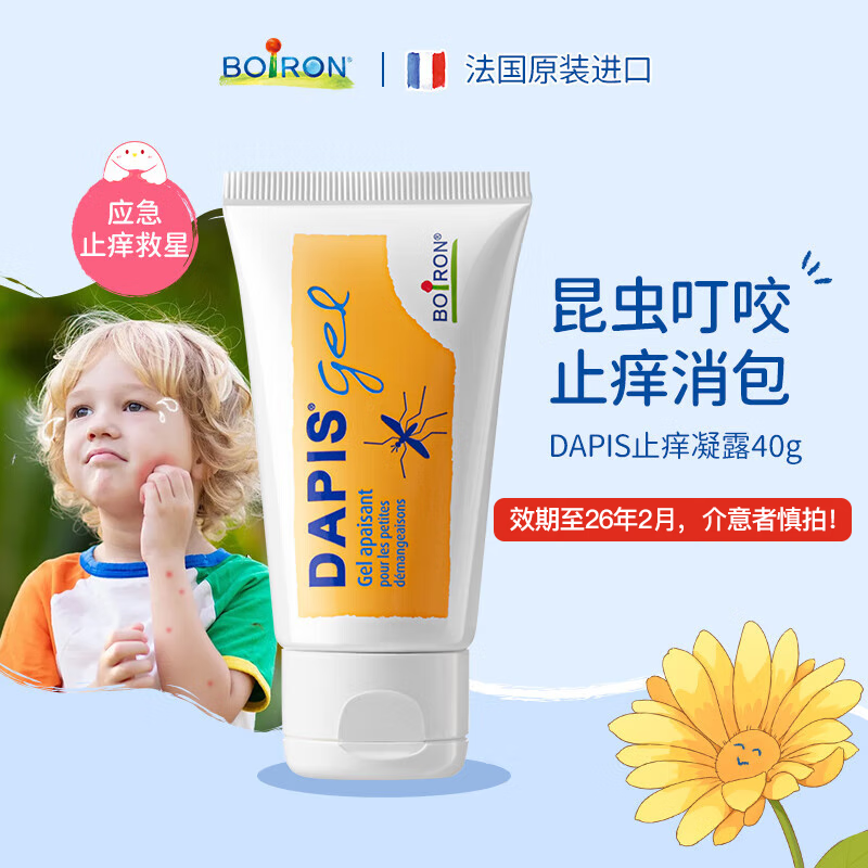 boiron 宝弘Dapis止痒凝胶40g 蚊虫叮咬快速舒缓红痒儿童婴幼儿止痒膏