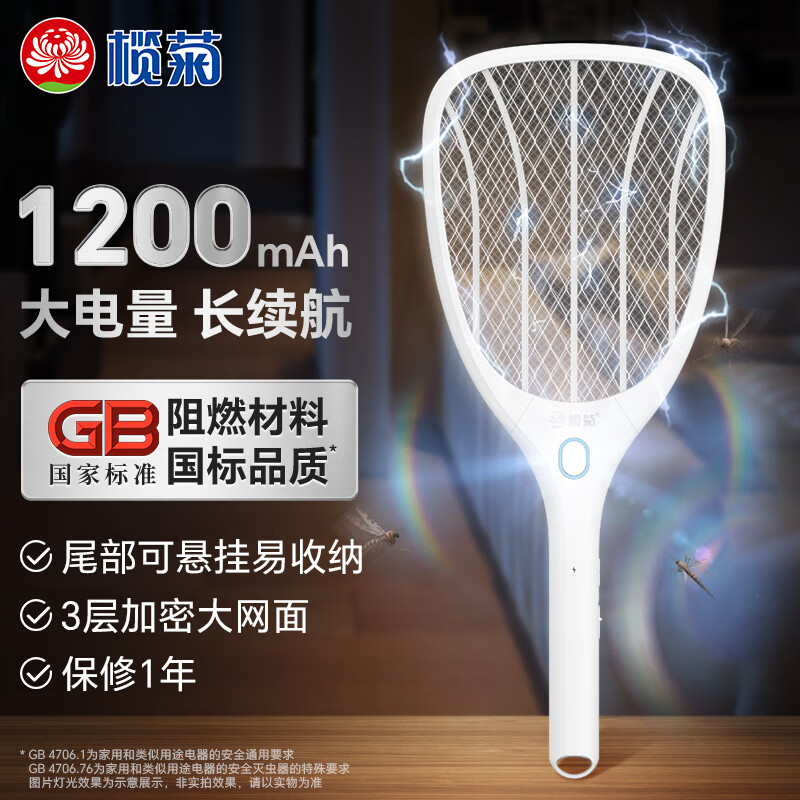 榄菊电蚊拍充电式灭蚊拍家用灭蚊虫蚊子拍灭蚊器苍蝇拍(随机发货)