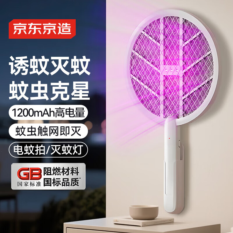 京东京造一拍两用电蚊拍 可充电高压灭蚊拍家用灭蚊虫蚊子拍灭蚊器大网面
