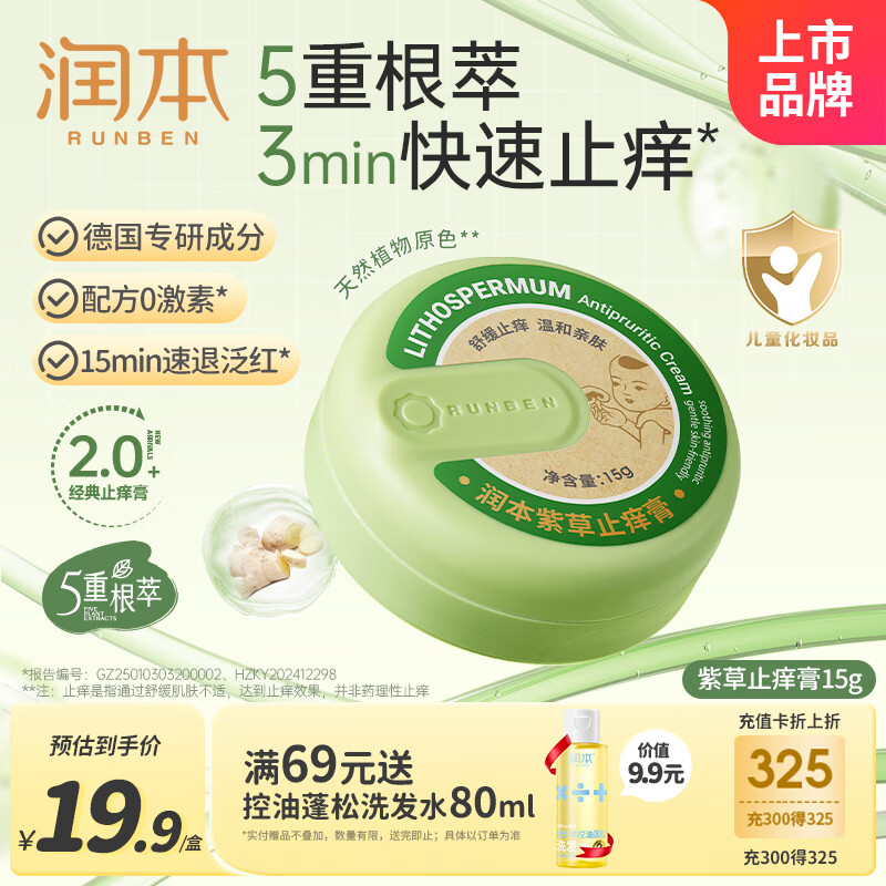 润本(RUNBEN)舒缓止痒膏20g 紫草膏 婴儿清凉膏叮包舒缓蚊虫叮咬