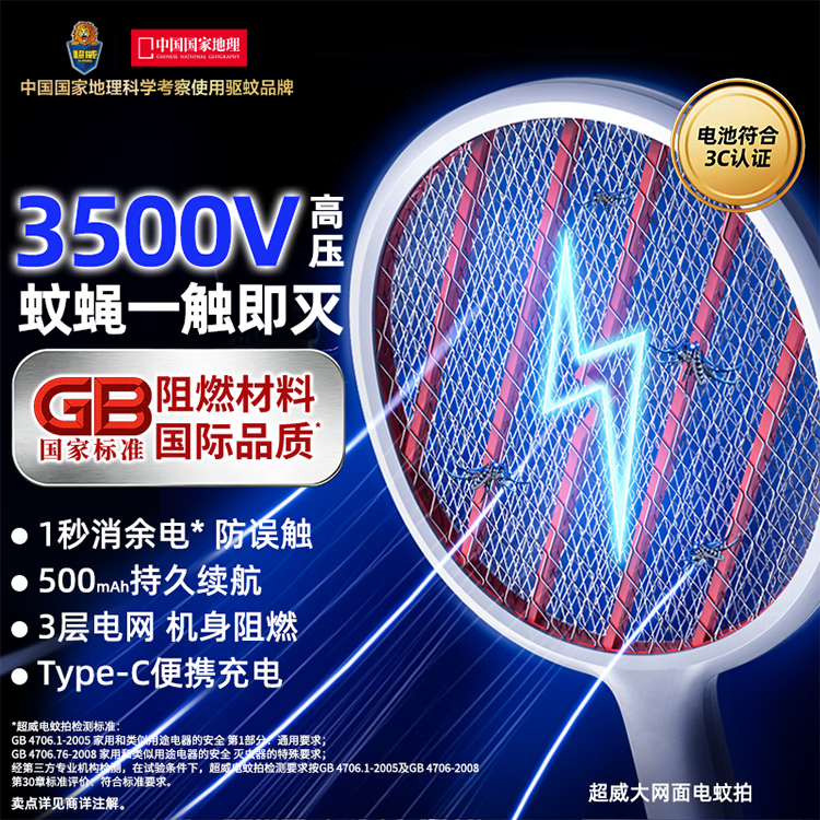 超威电蚊拍基孔肯雅热家用充电式强力灭蚊拍大网面灭蚊虫蚊子拍灭蚊器