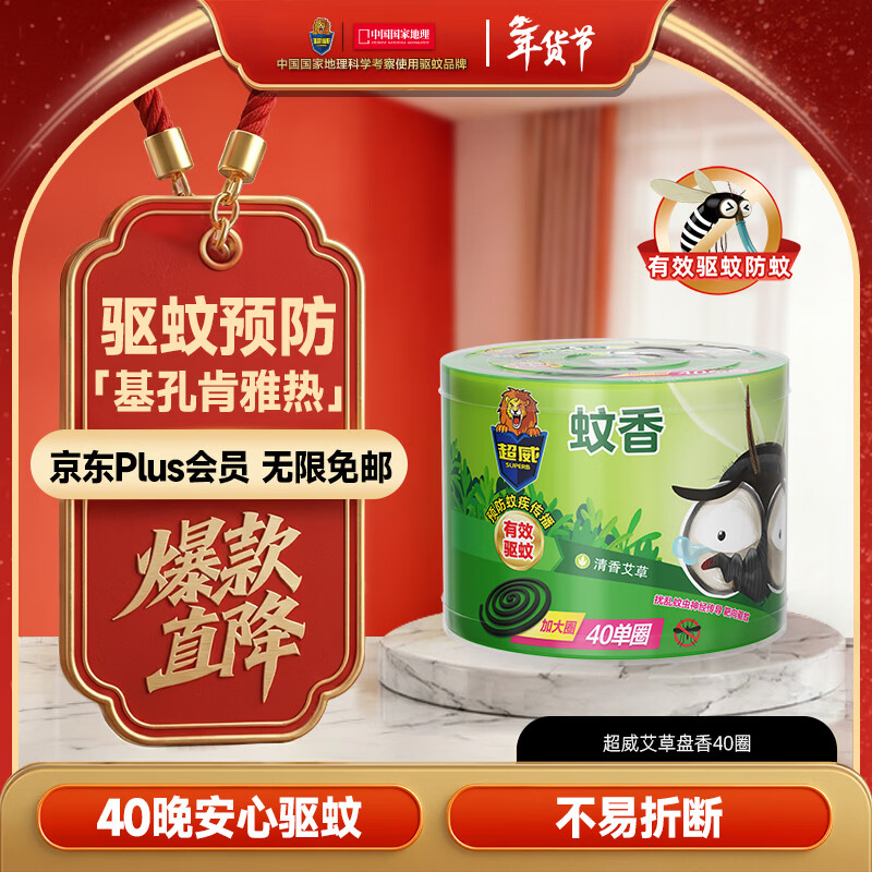 超威蚊香盘40圈*1盒基孔肯雅热户外微烟蚊香防蚊驱蚊灭蚊盘香艾草清香