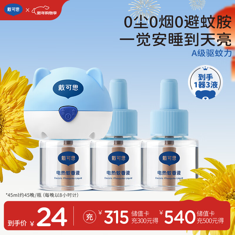 戴·可·思基孔肯雅热电热蚊香液驱蚊液套装电热蚊香液套装(1器+3液)
