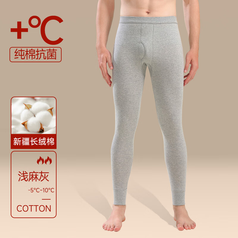 雅鹿秋裤男款纯棉抗菌衬裤男式打底保暖全棉毛线裤男生春秋男士保暖裤 NSATL-浅麻灰 【100%棉】 2XL 适合140-170斤