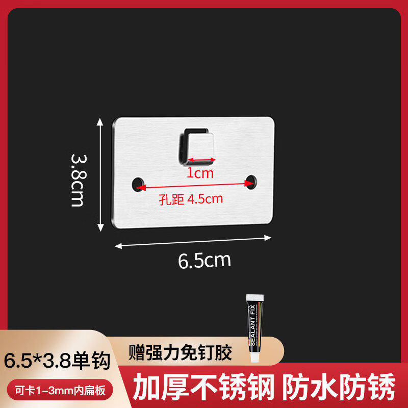 溥畔置物架粘贴片不锈钢强力贴厨房浴室免钉卡扣挂钩粘钩墙上 6点5*3点8单钩可卡1-m内扁板