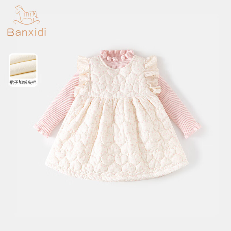 班喜迪女童连衣裙秋冬装2025新款洋气加绒夹棉儿童公主裙子宝宝周岁礼服 米色 90 cm