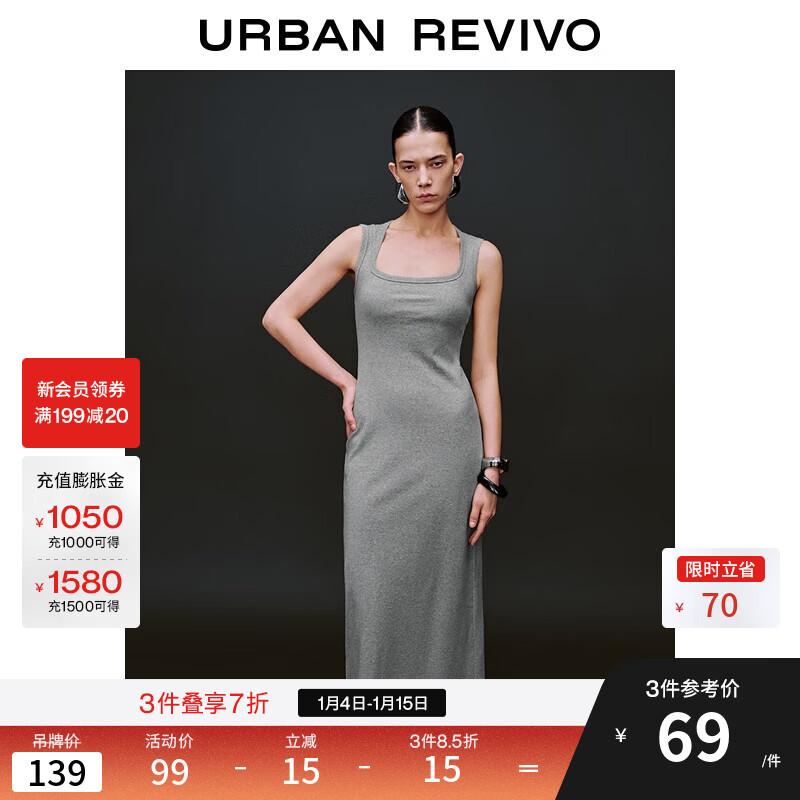 UR2025夏季新款女装休闲褶皱后开衩无袖连衣裙UWB750004 花灰 L