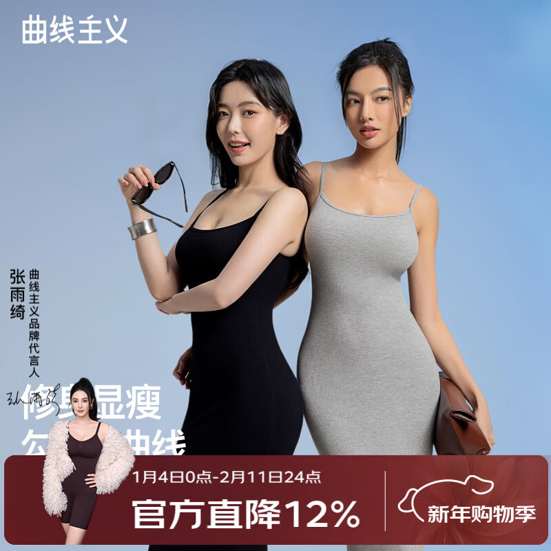 曲线主义连衣裙女包臀收腹显瘦连衣裙修身吊带连衣裙 米咖 S 码