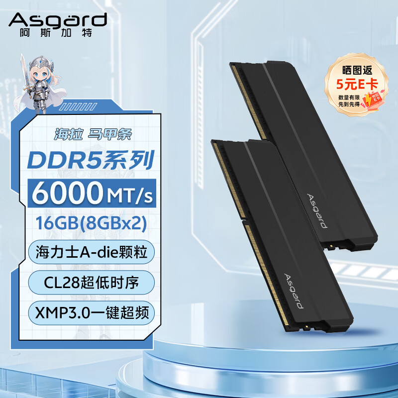 阿斯加特(Asgard)16GB(8GBx2) DDR5 6000 台式机内存条 海拉 马甲条 海力士A-die CL28 极夜黑