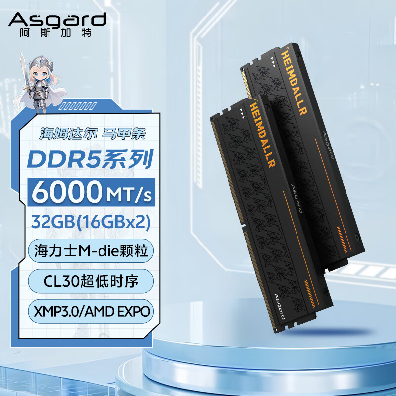 阿斯加特(Asgard)32GB(16GBx2) DDR5 6000 台式机内存条 海姆达尔 马甲条 海力士M-die CL30 黑厚甲