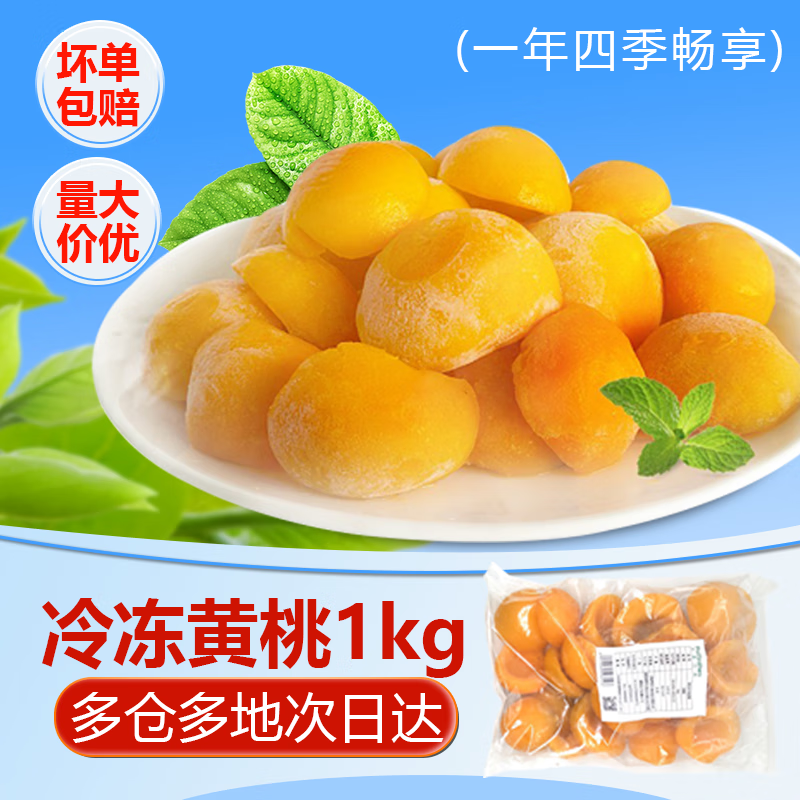 达不榴冷冻黄桃肉冰冻速冻黄桃瓣应季无核孕妇零添加水果罐头 1kg
