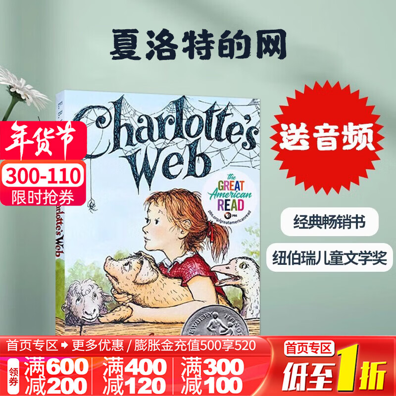 Charlotte's Web夏洛特的网 英文原版小说 E.B White怀特章节 送音频 纽伯瑞获奖作品 青少年小说 送音频