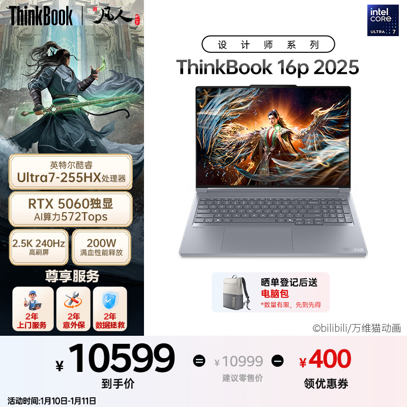 ThinkPad联想设计师系列ThinkBook16p AI游戏笔记本电脑酷睿Ultra7-255HX RTX5060 2.5K 240Hz 32G 1T