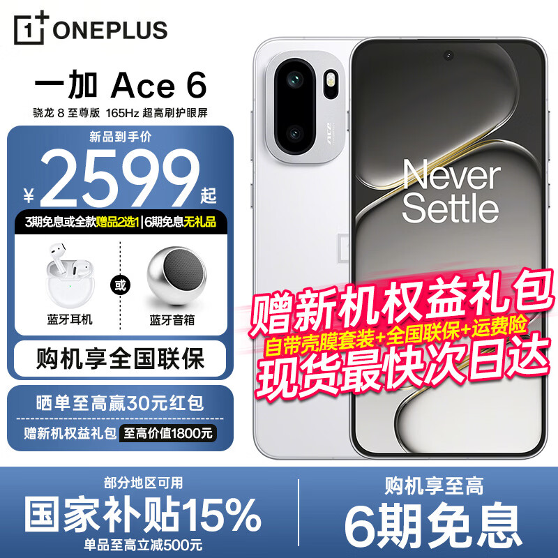 OPPO【国家补贴15%】一加 Ace 6 全新游戏性能旗舰机 5G全网通 闪白 16GB+512GB 官方标配【全网联保】