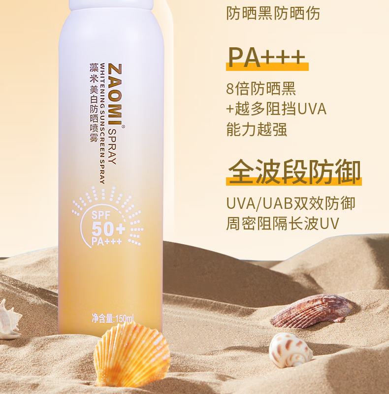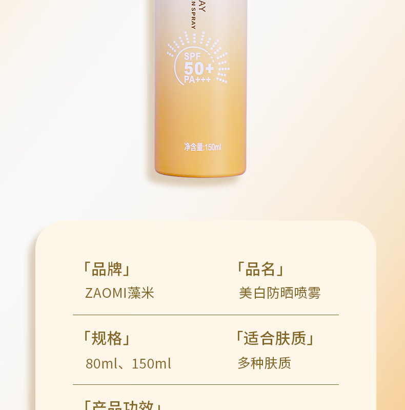 藻米【超值组合】美白防晒喷雾80ML+150ML 【国妆特字】SPF50+/PA+++ 美白防晒80ml+150ML 快速成膜