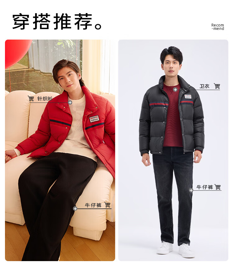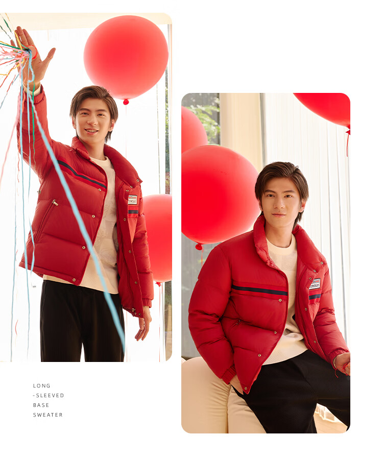 莱克斯顿羽绒服男冬季红品【本命年】短款外套防风保暖面包服上衣男 中红 S