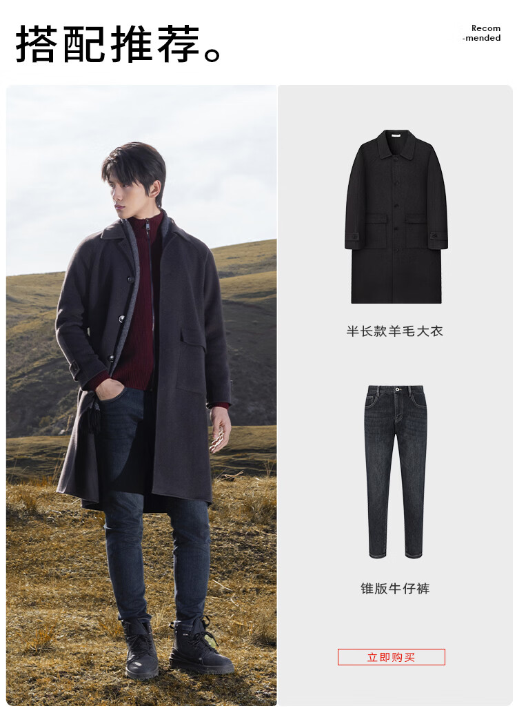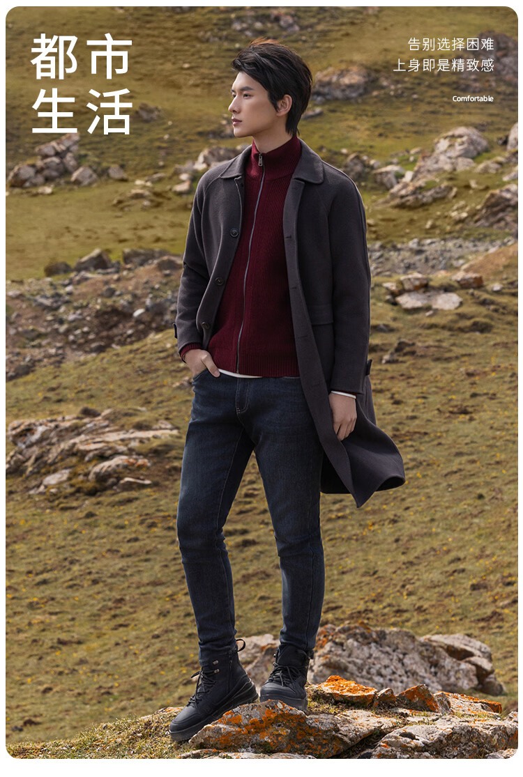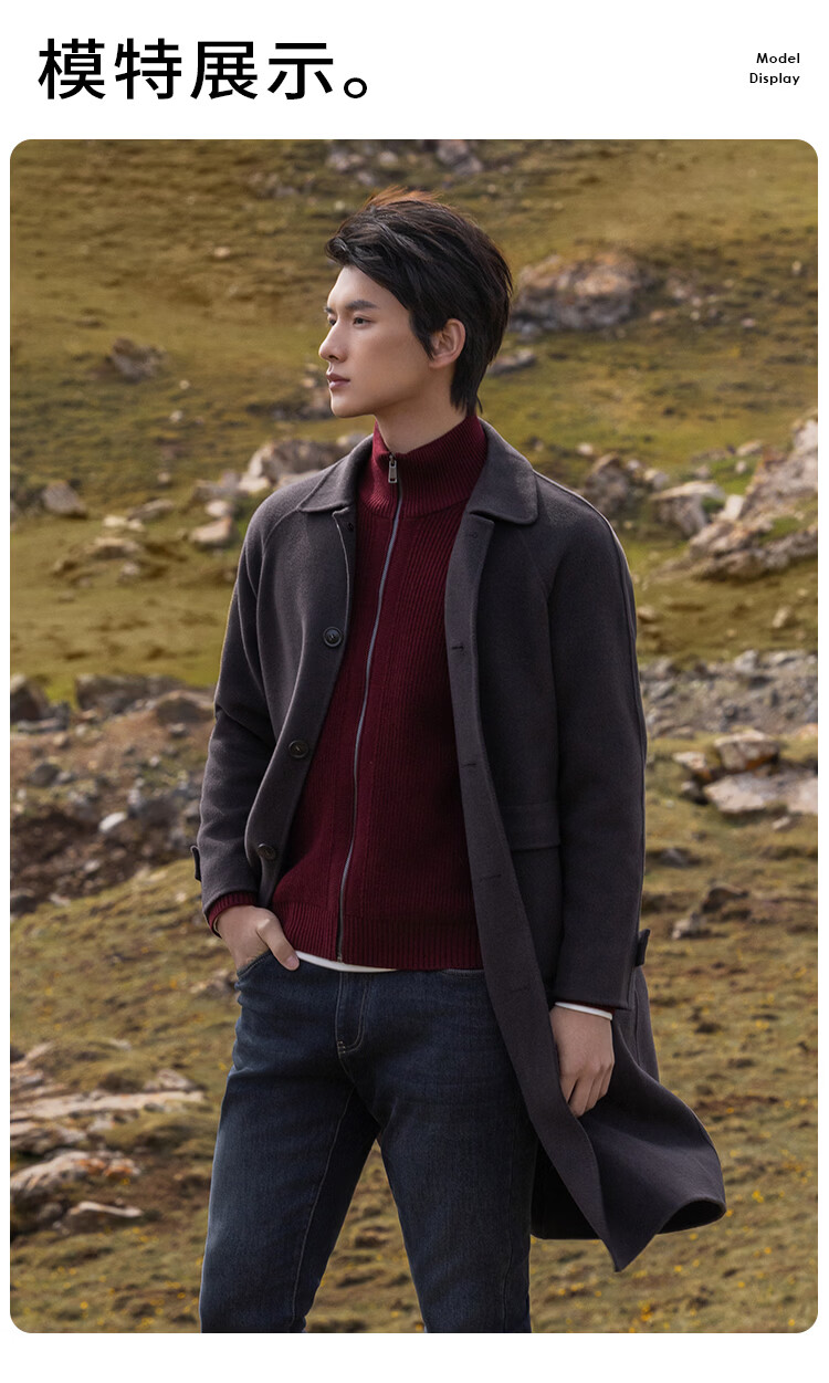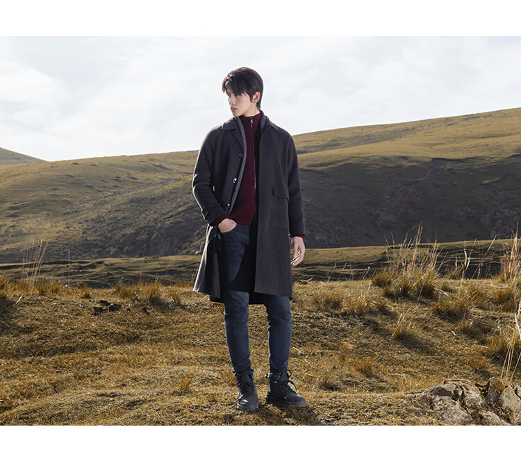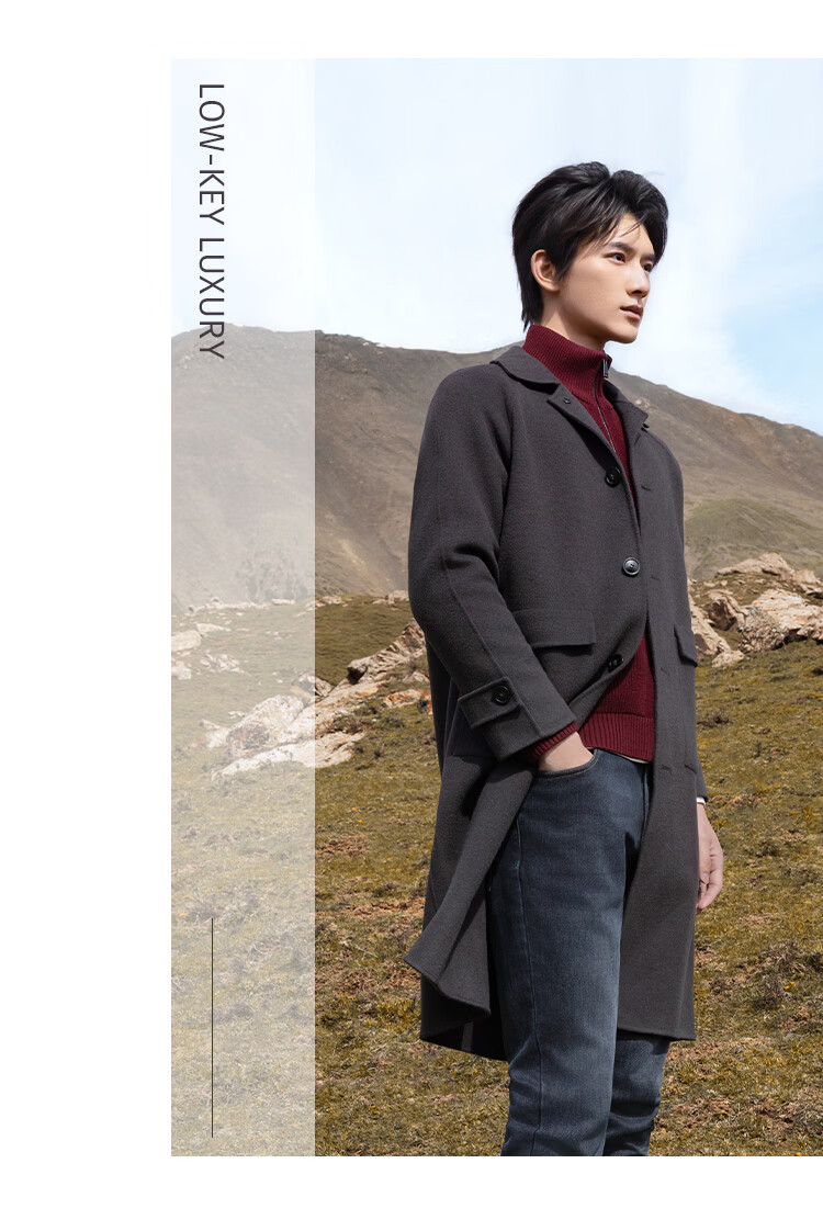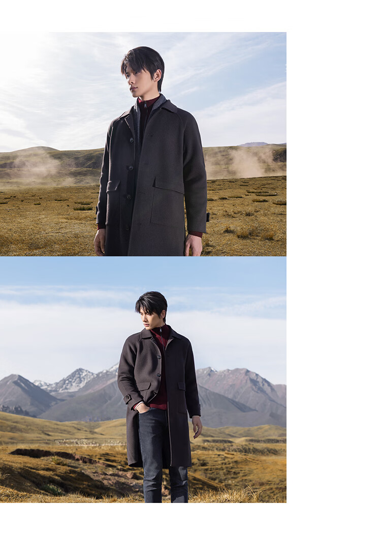 莱克斯顿毛呢大衣男新款【含绵羊毛】抗起球商务休闲单排扣呢子外套男 深咖啡 S