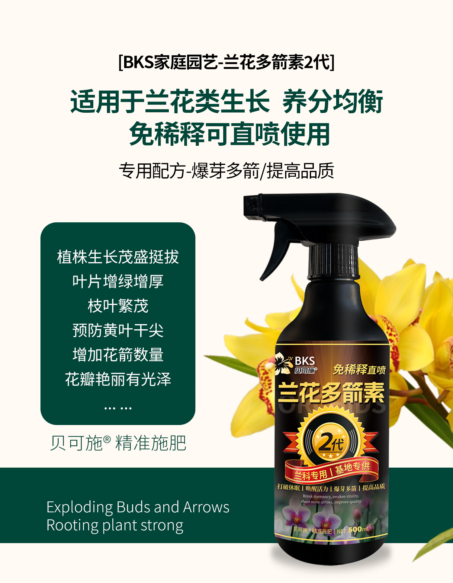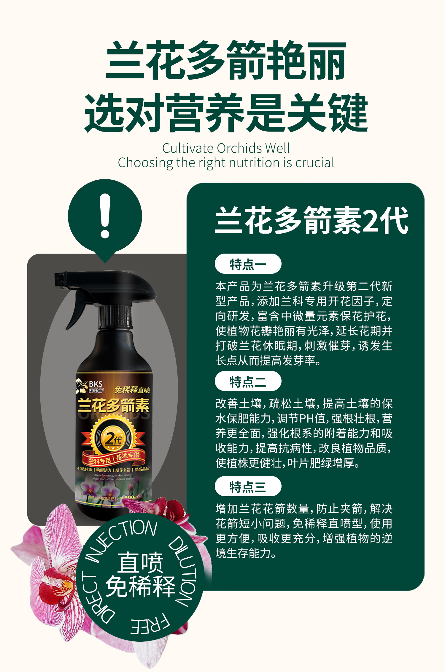 贝可施兰花多箭素兰花专用营养液催花延花期治黄叶专用液体肥 兰花多箭素2代 发3瓶【粉丝福利 立省19.9元】