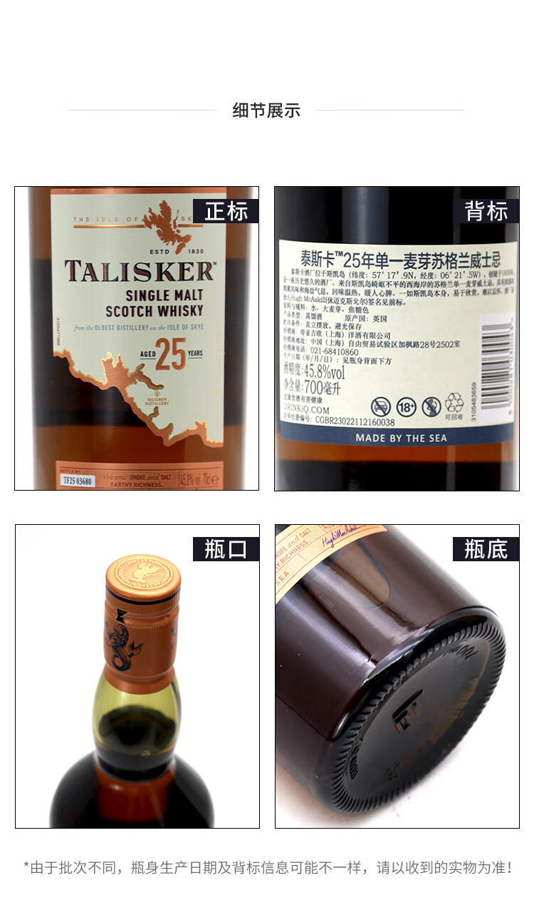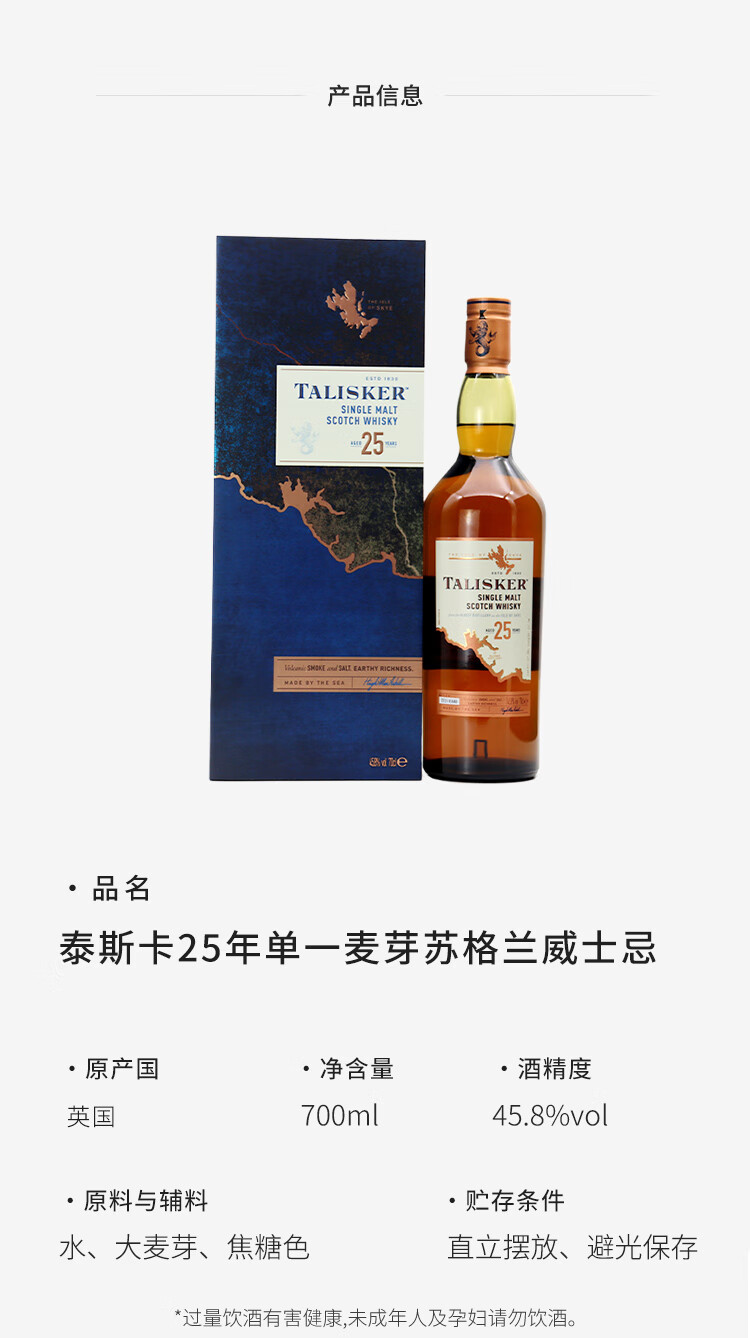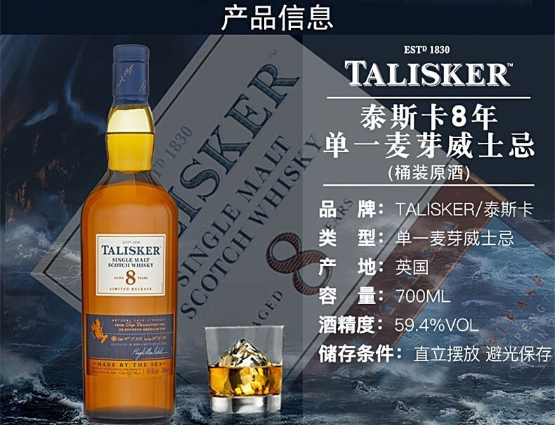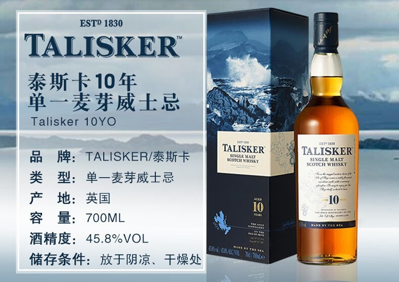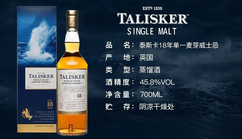 泰斯卡Talisker 苏格兰原装进口单一麦芽威士忌洋酒 泰斯卡 18年700ml