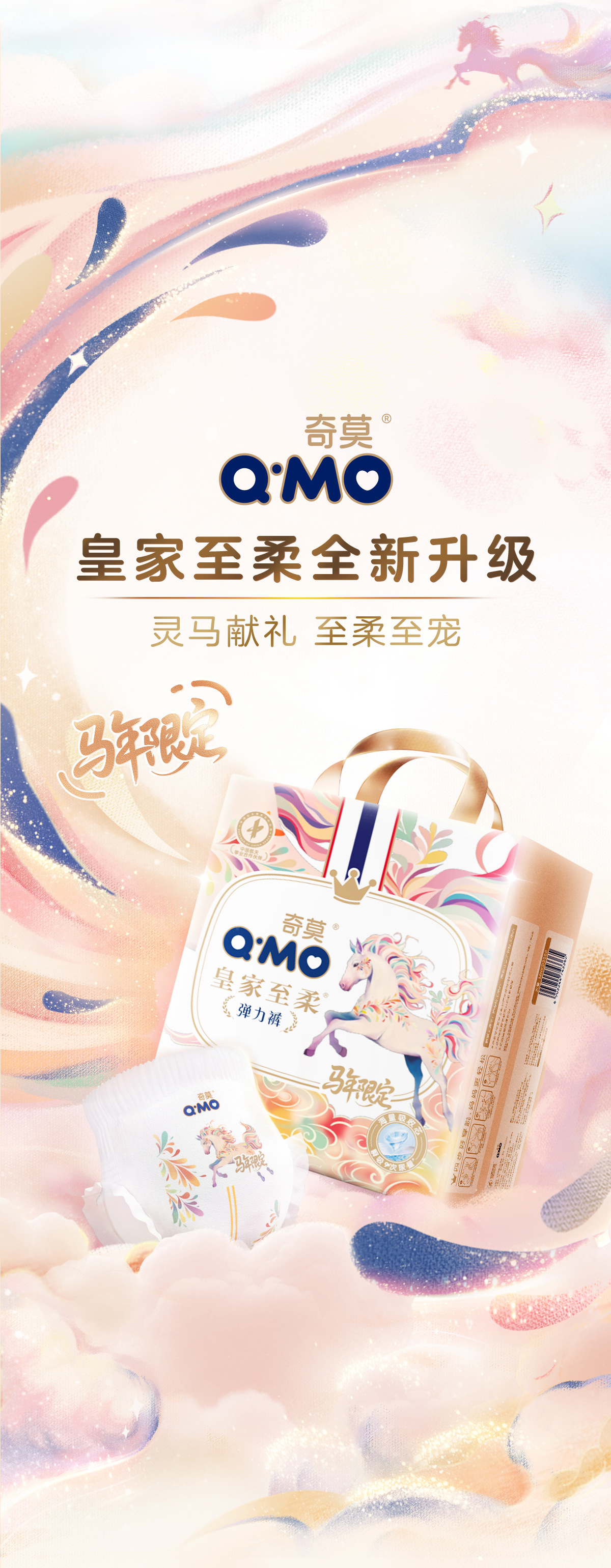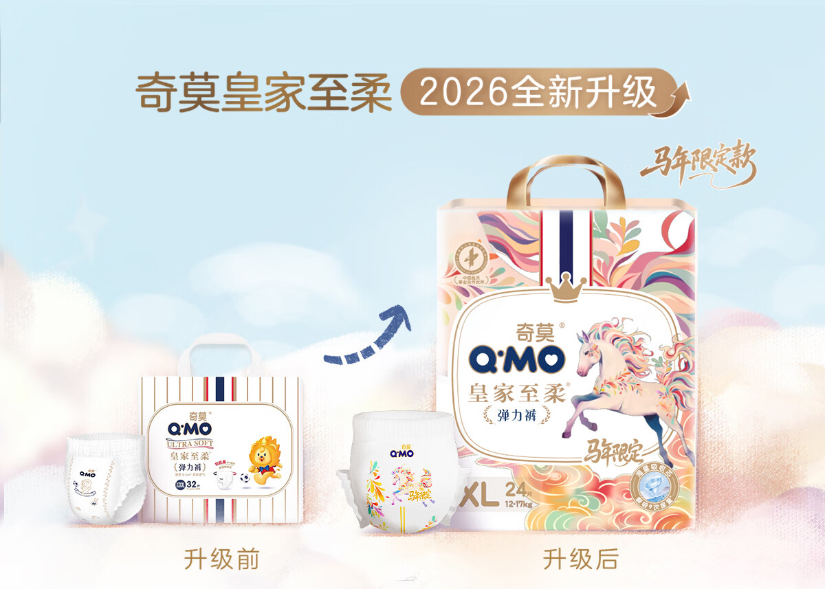 奇莫(Q-MO)皇家至柔马年限定弹力裤拉拉裤尿不湿超薄透气柔软防漏学步裤 拉拉裤XXXL码40片