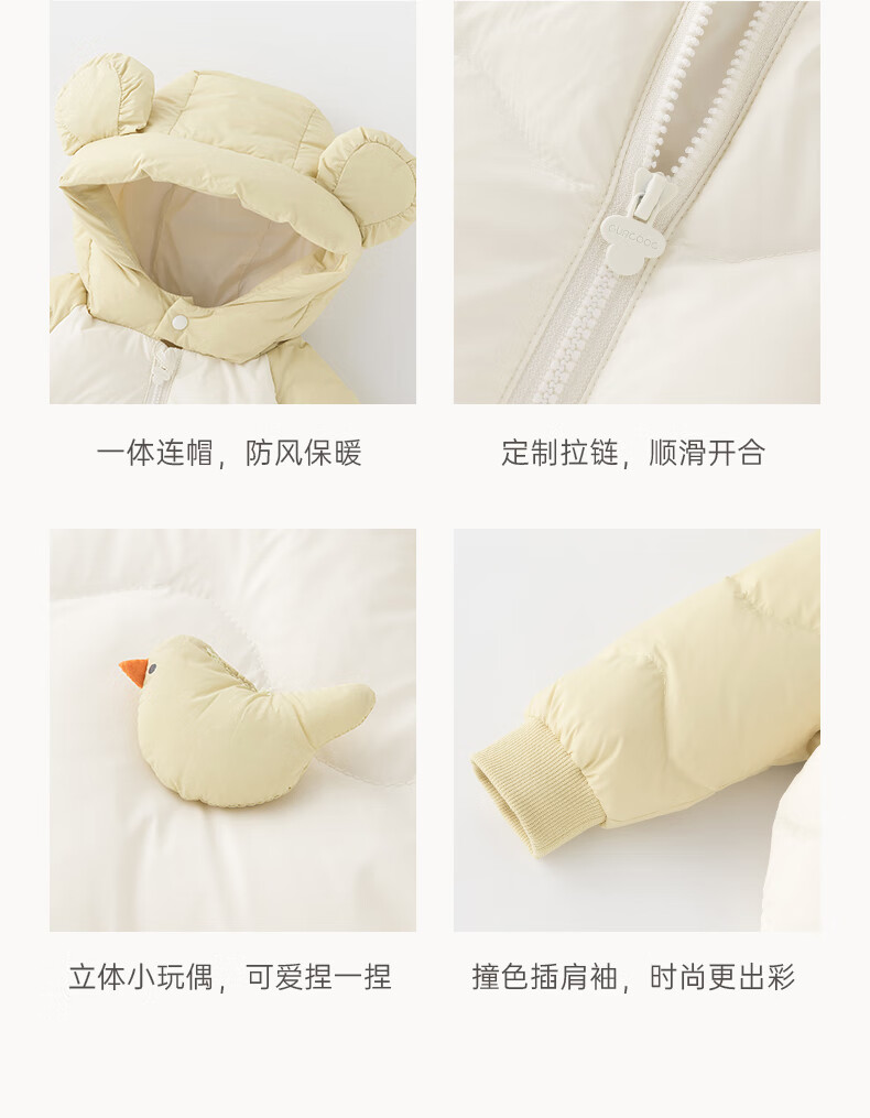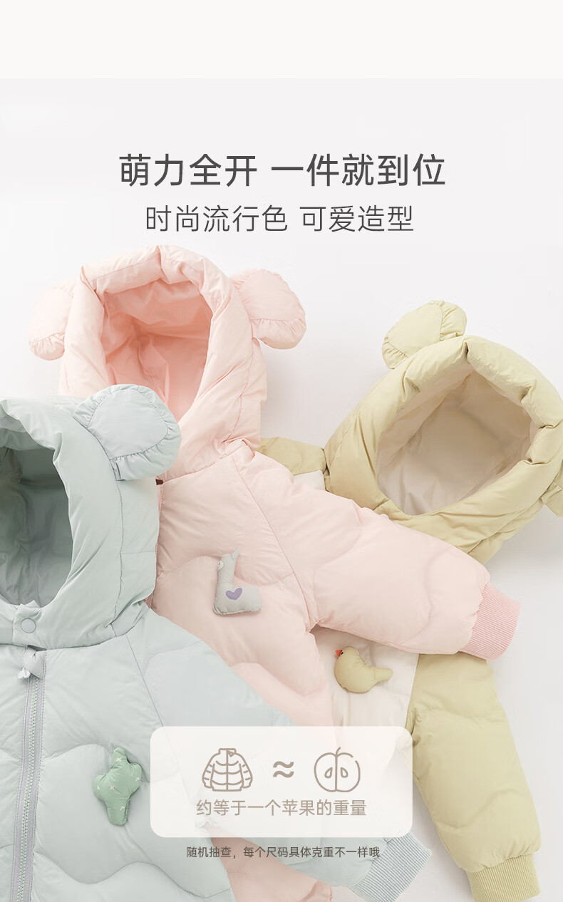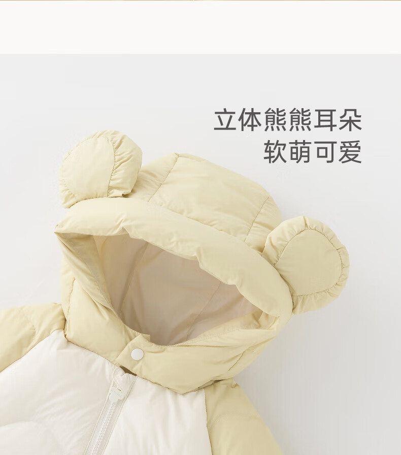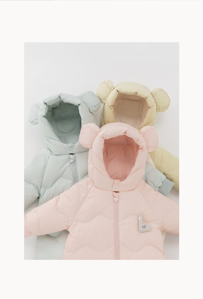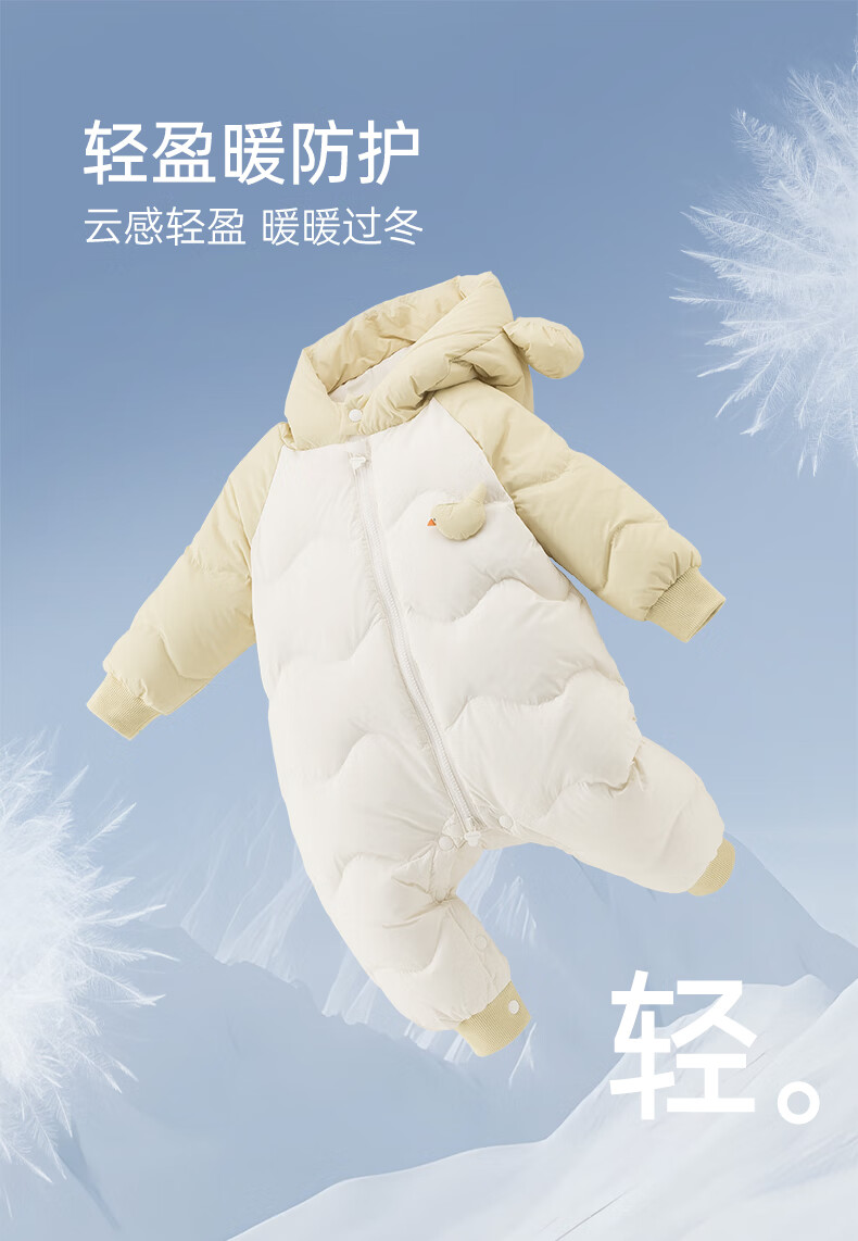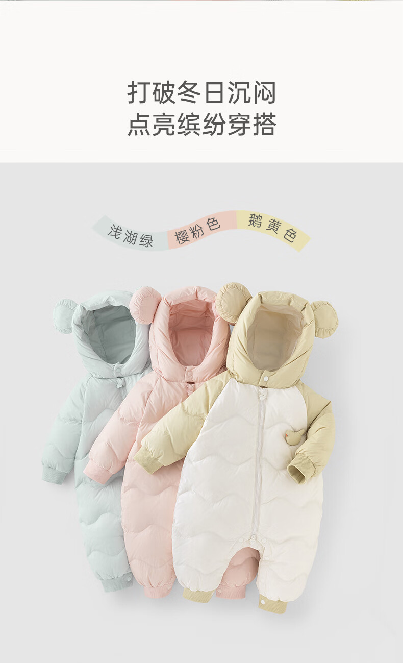 乖奇熊【三防轻薄羽绒服】宝宝连体衣冬季婴幼儿保暖连帽哈衣服外出冬装 浅湖绿 90cm
