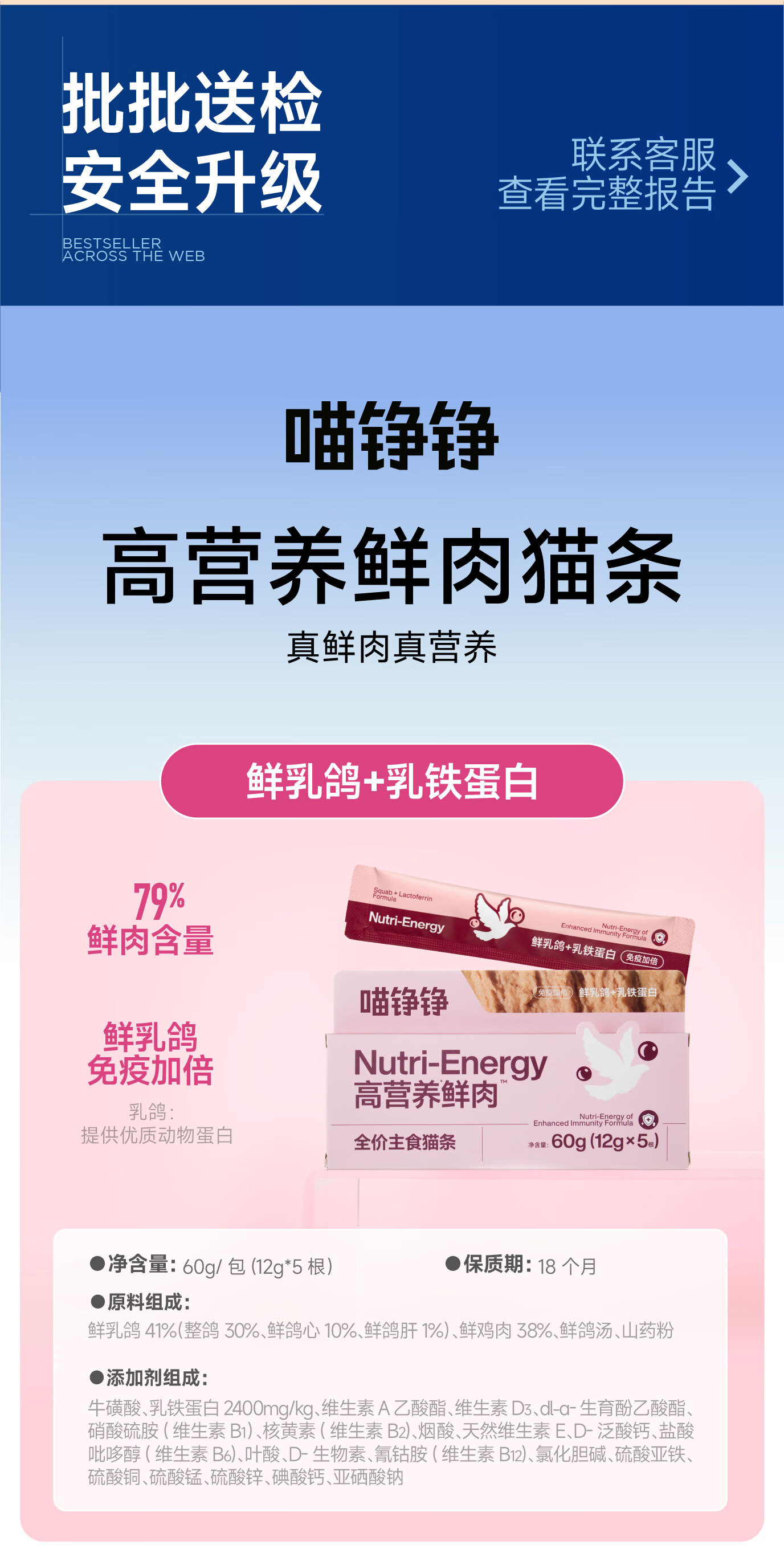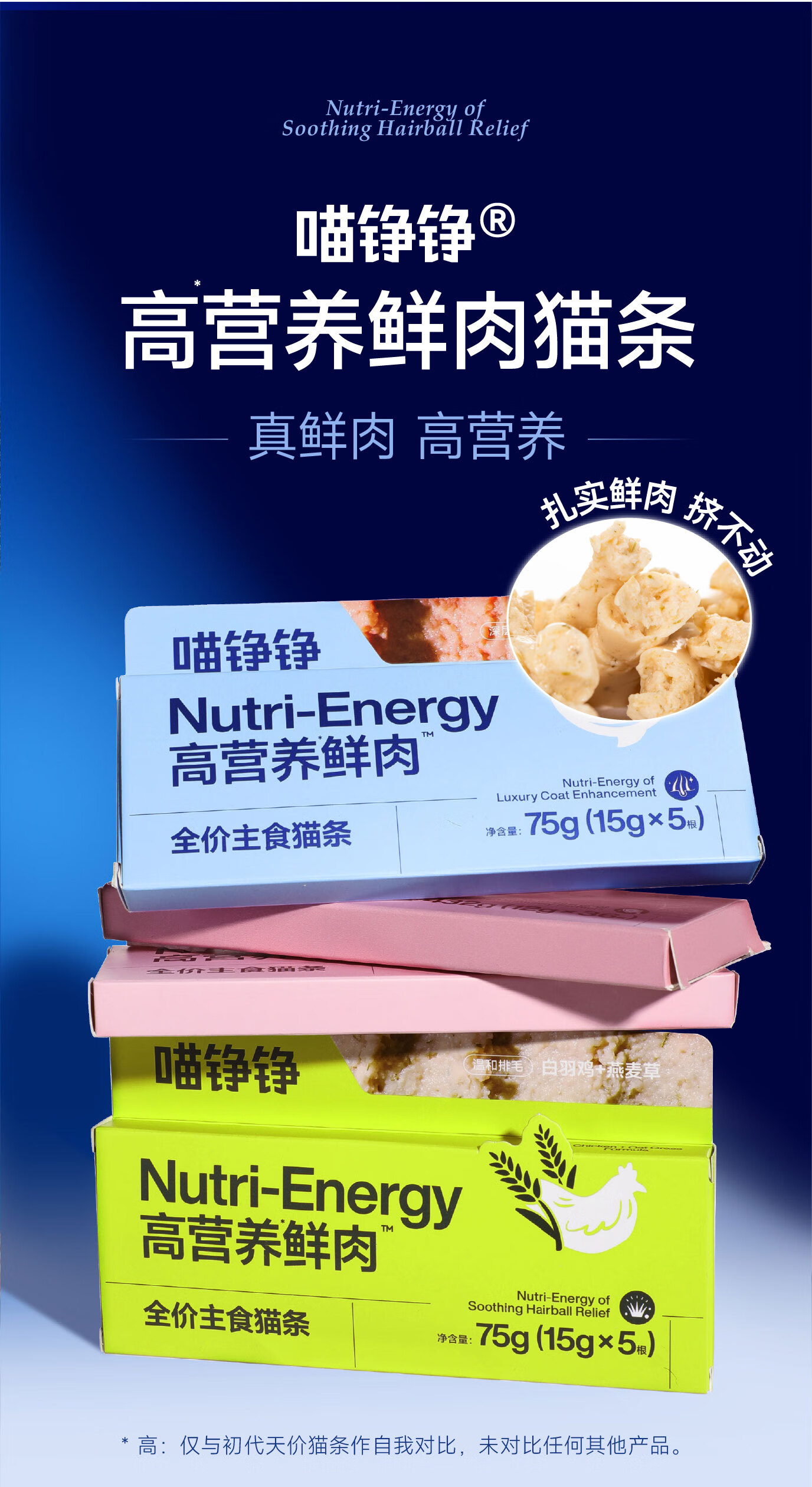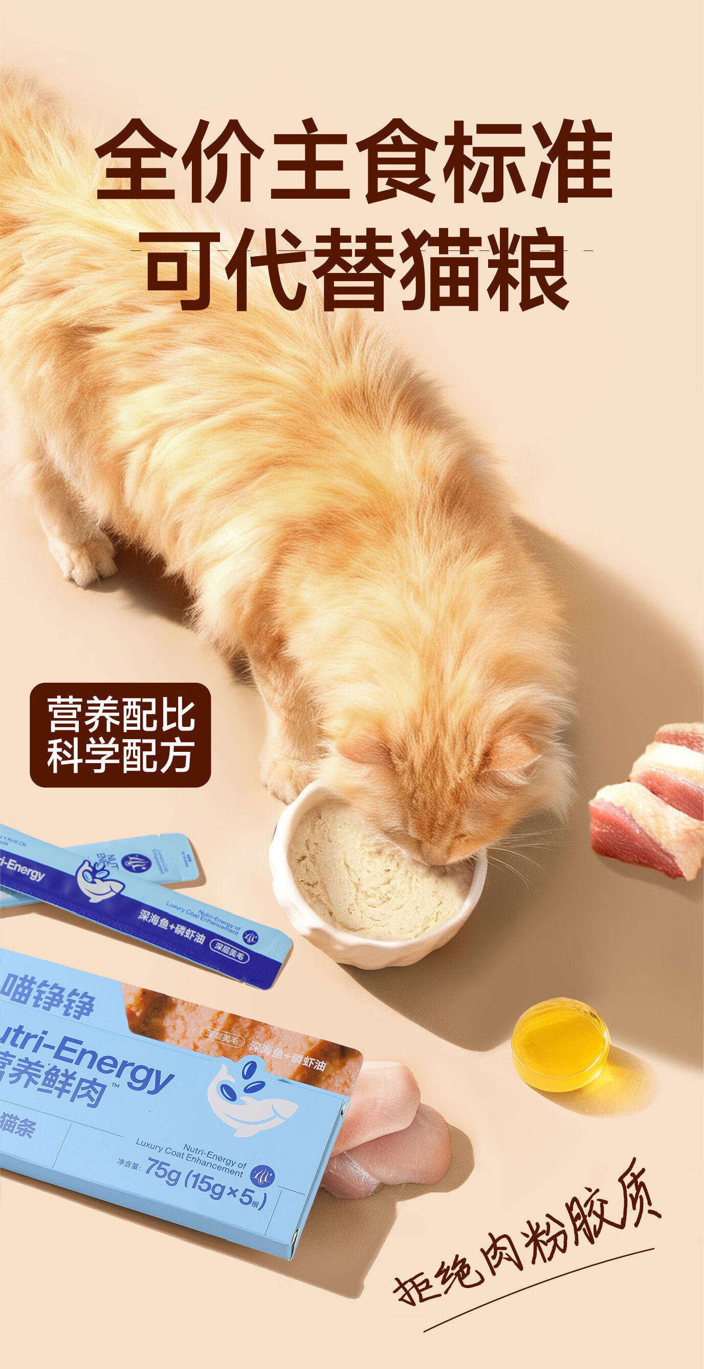 喵铮铮主食猫条湿粮高营养鲜肉猫零食成猫幼猫妙鲜包5支试吃装 高营养鲜肉猫条15g*5支(深层美毛)