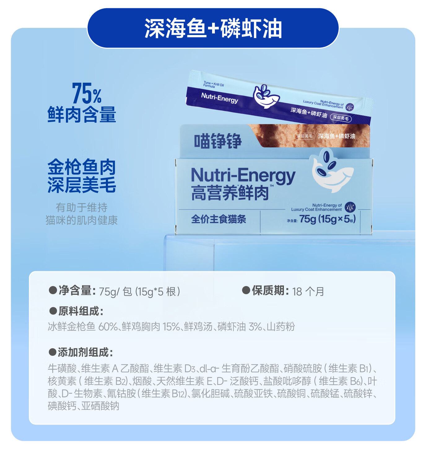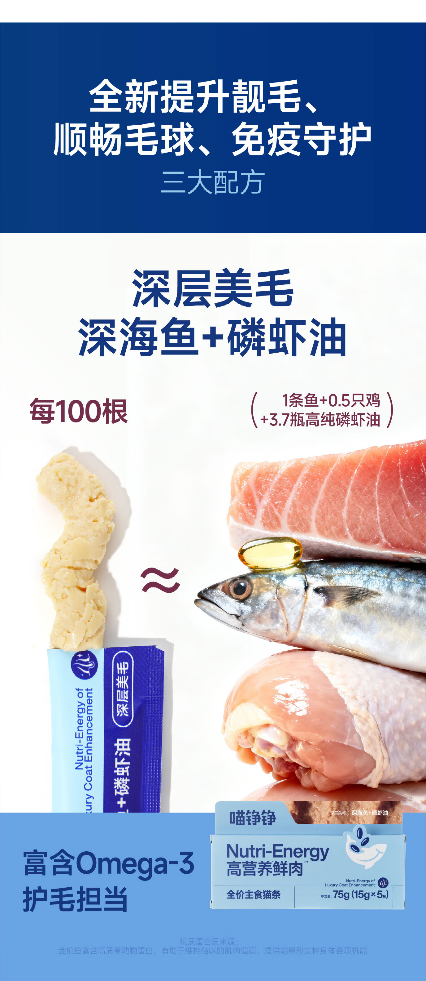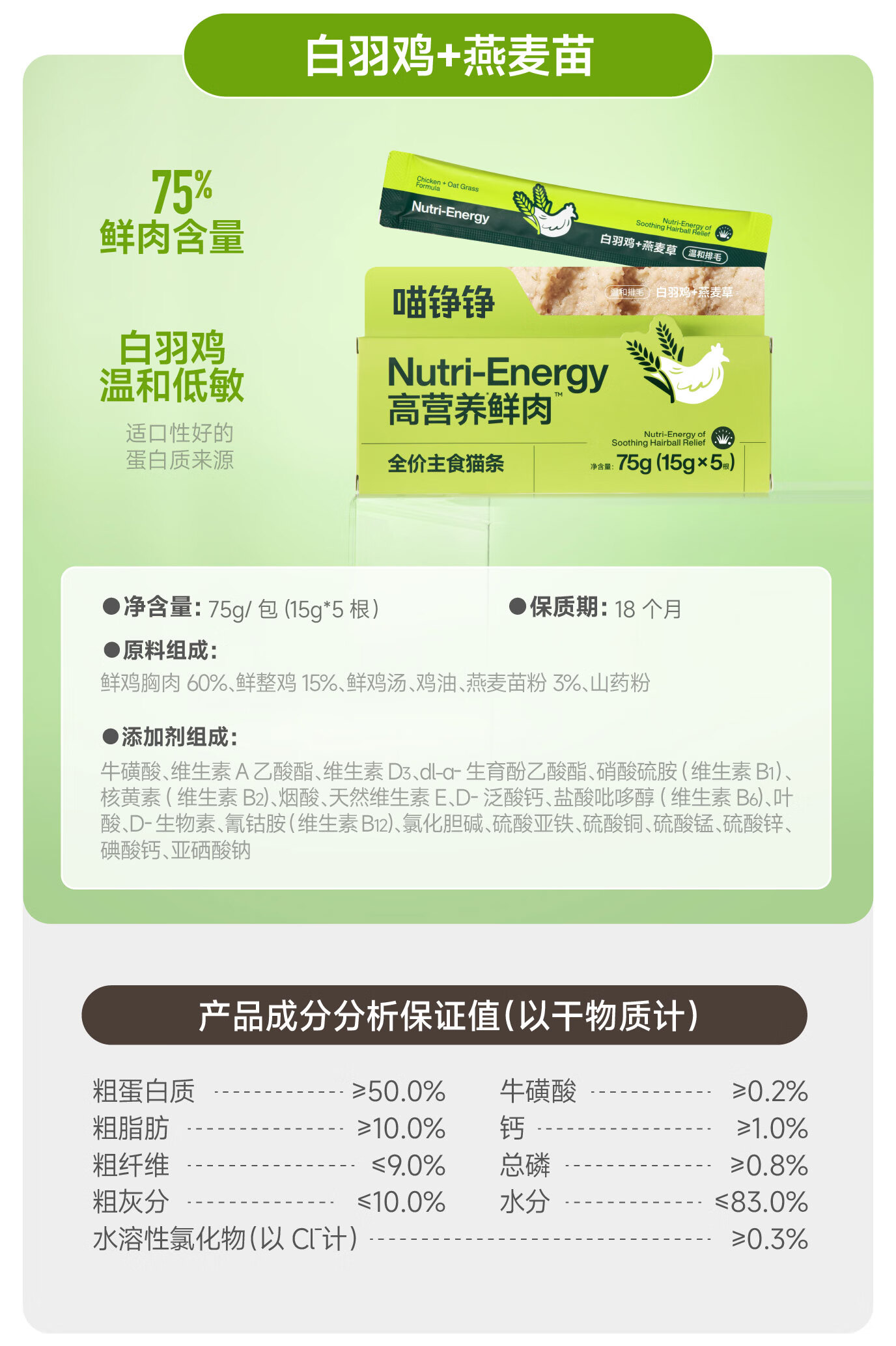 喵铮铮主食猫条湿粮高营养鲜肉猫零食成猫幼猫妙鲜包5支试吃装 高营养鲜肉猫条15g*5支(深层美毛)