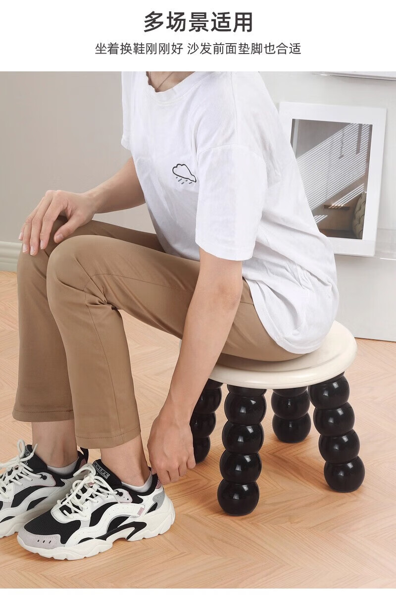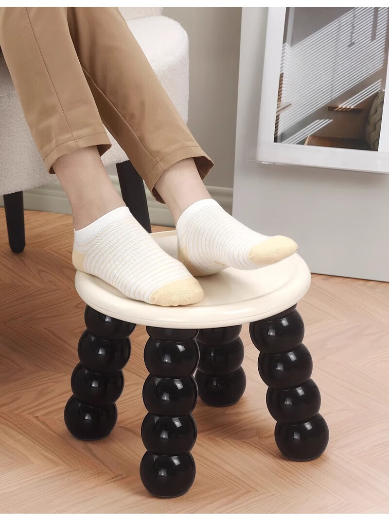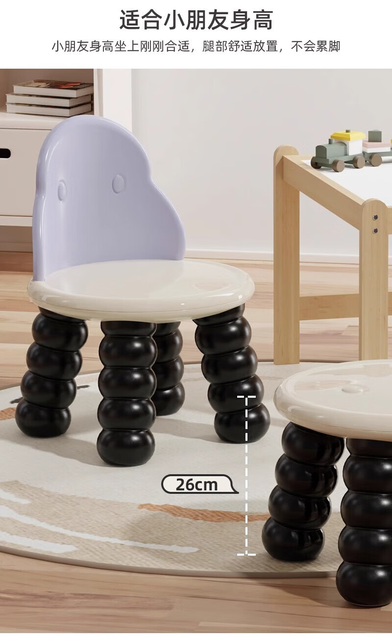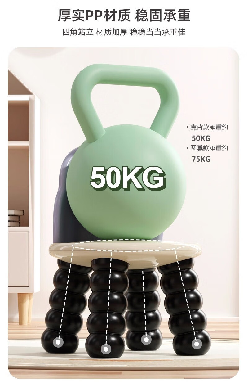 木格格小凳子客厅高级感靠背椅塑料凳子家用加厚结实小板凳圆凳子矮凳子 凳子(黑色)
