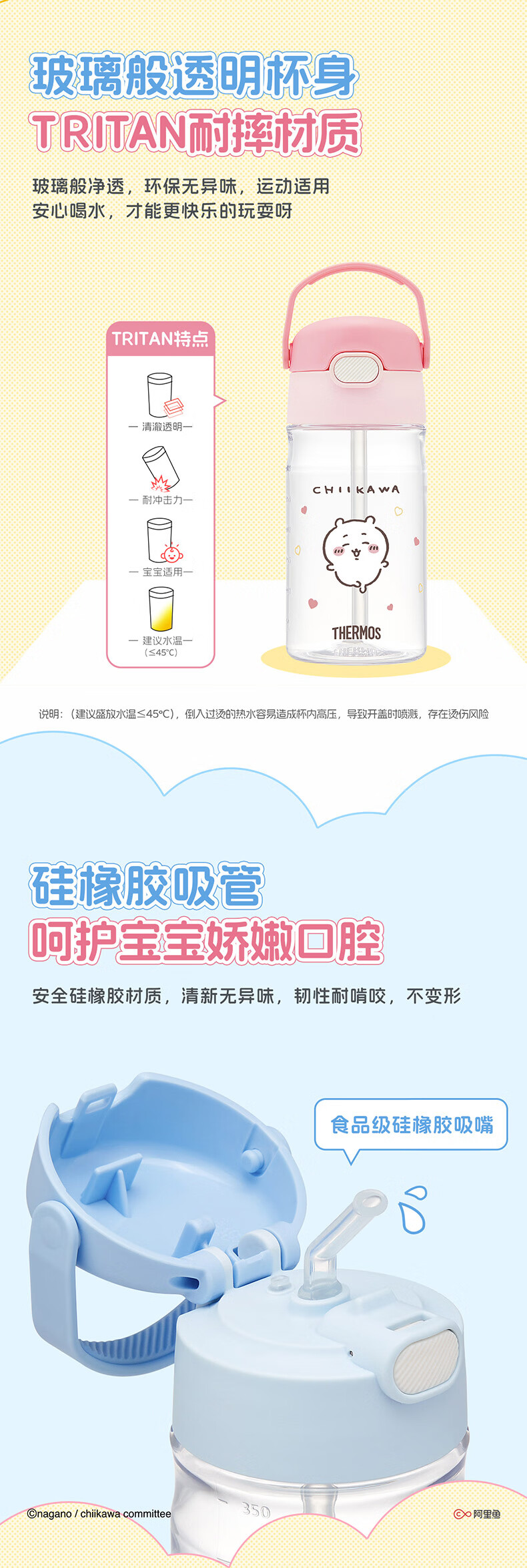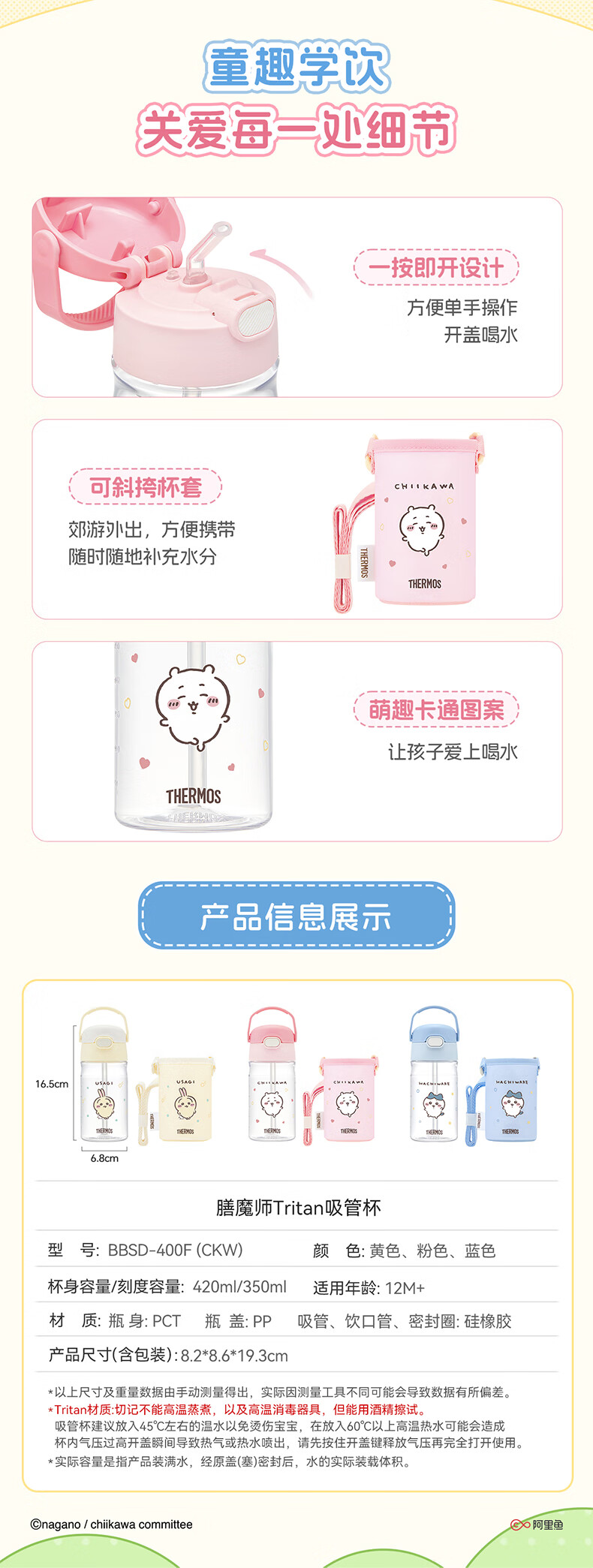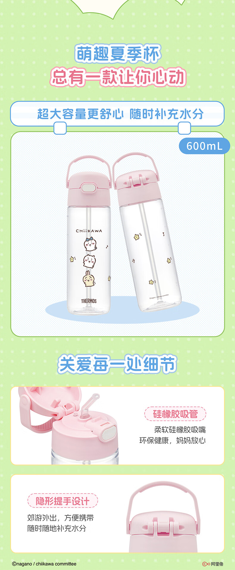 膳魔师(THERMOS)儿童夏季水杯chiikawa便携吸管杯吉伊杯套畅吸提手学生杯上学BBSD