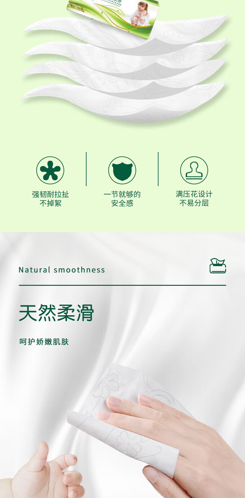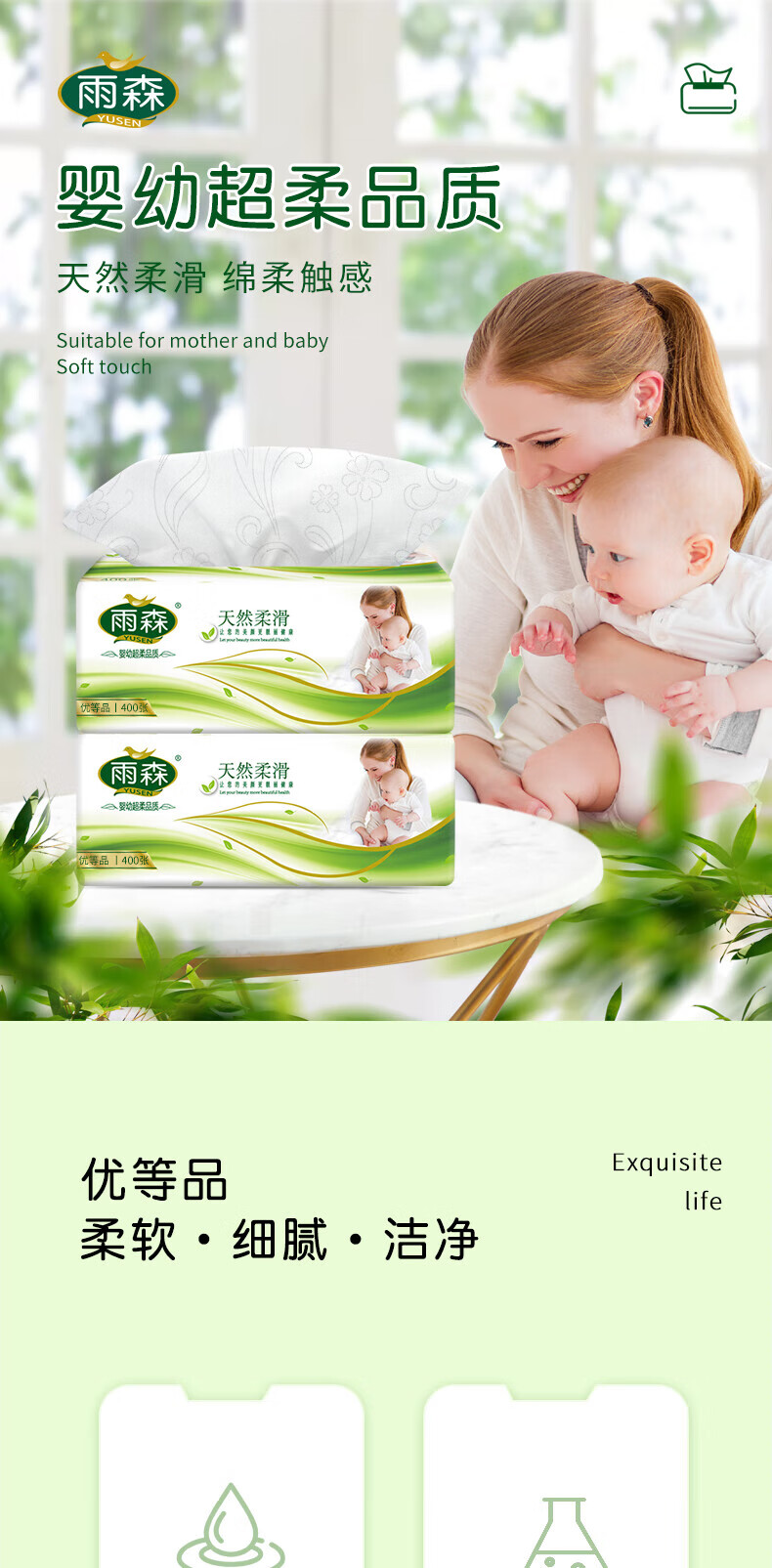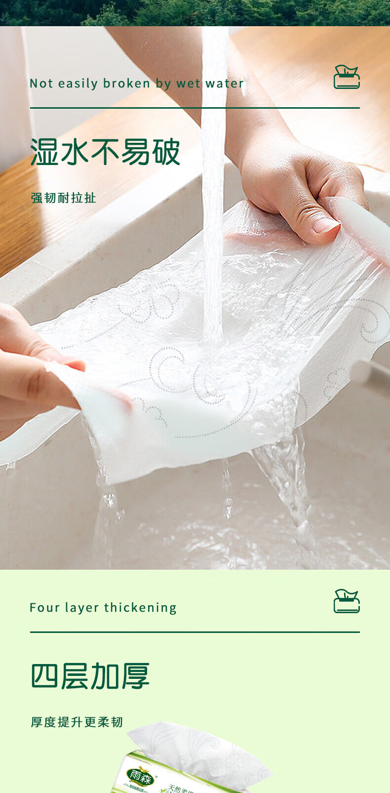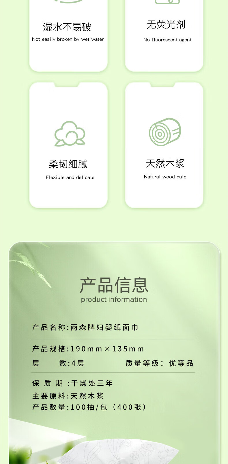 雨森天然柔滑妇婴抽纸面巾纸400张/包4层厚餐巾纸柔软舒适木浆纸巾M码 4层 100抽*6包