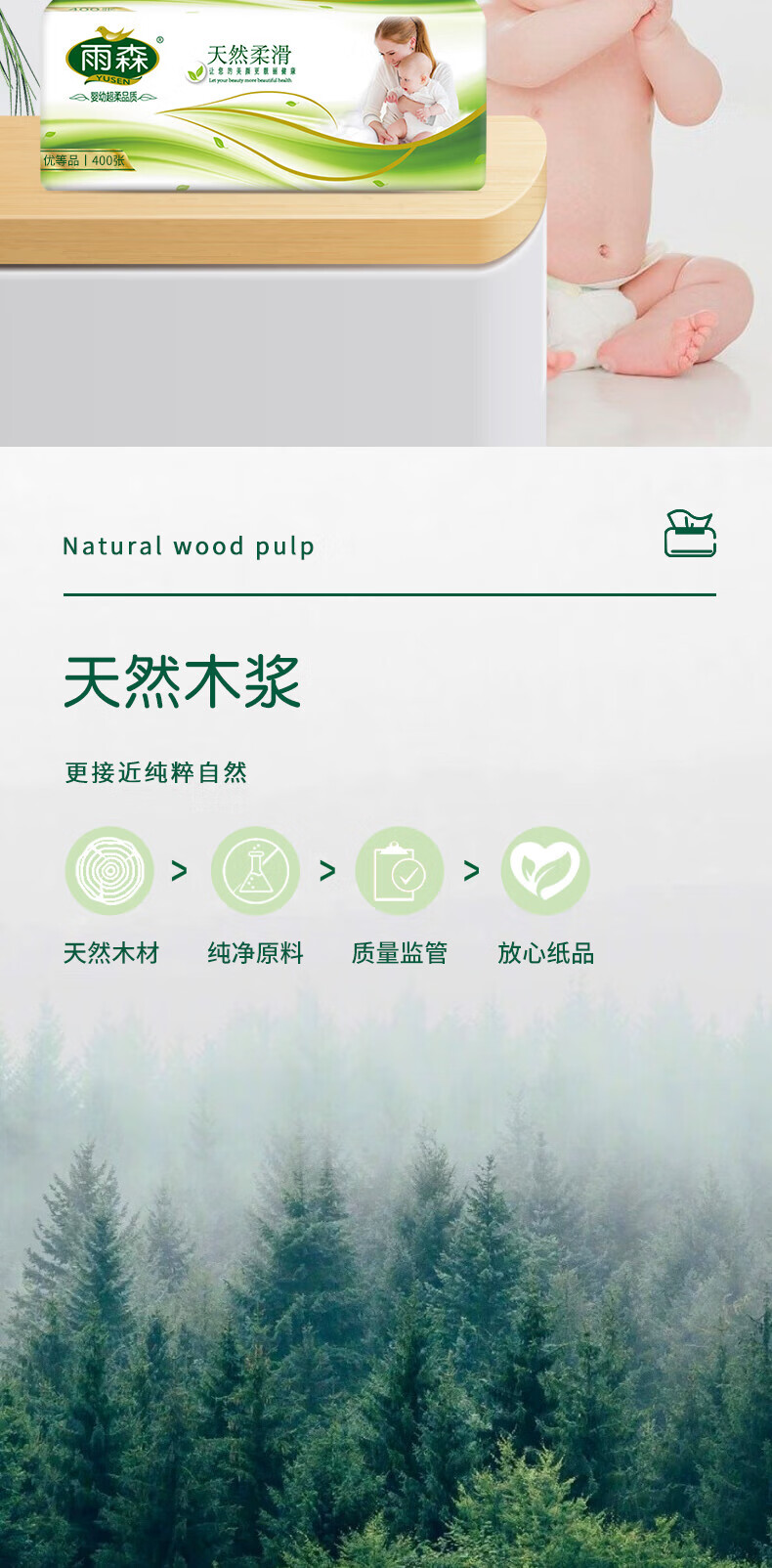 雨森纸抽纸妇婴系列4层100抽卫生纸家用手纸巾学生宿舍面巾纸餐巾纸 4层 400张*12包 【超值装】