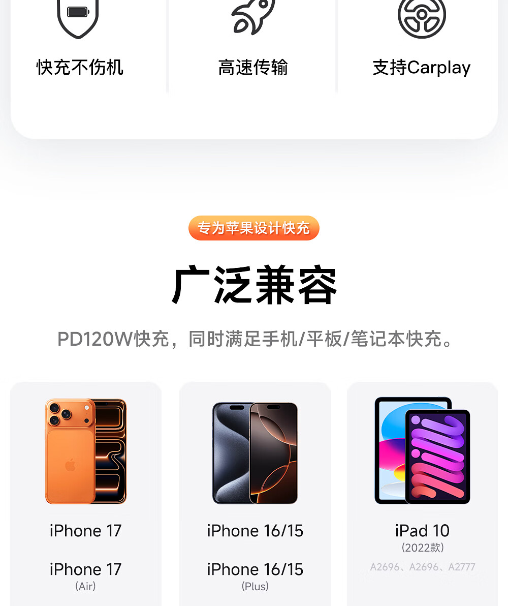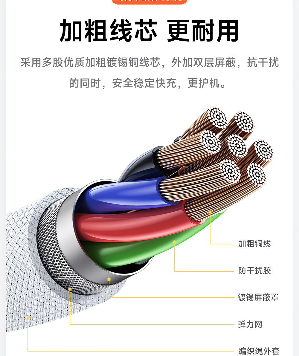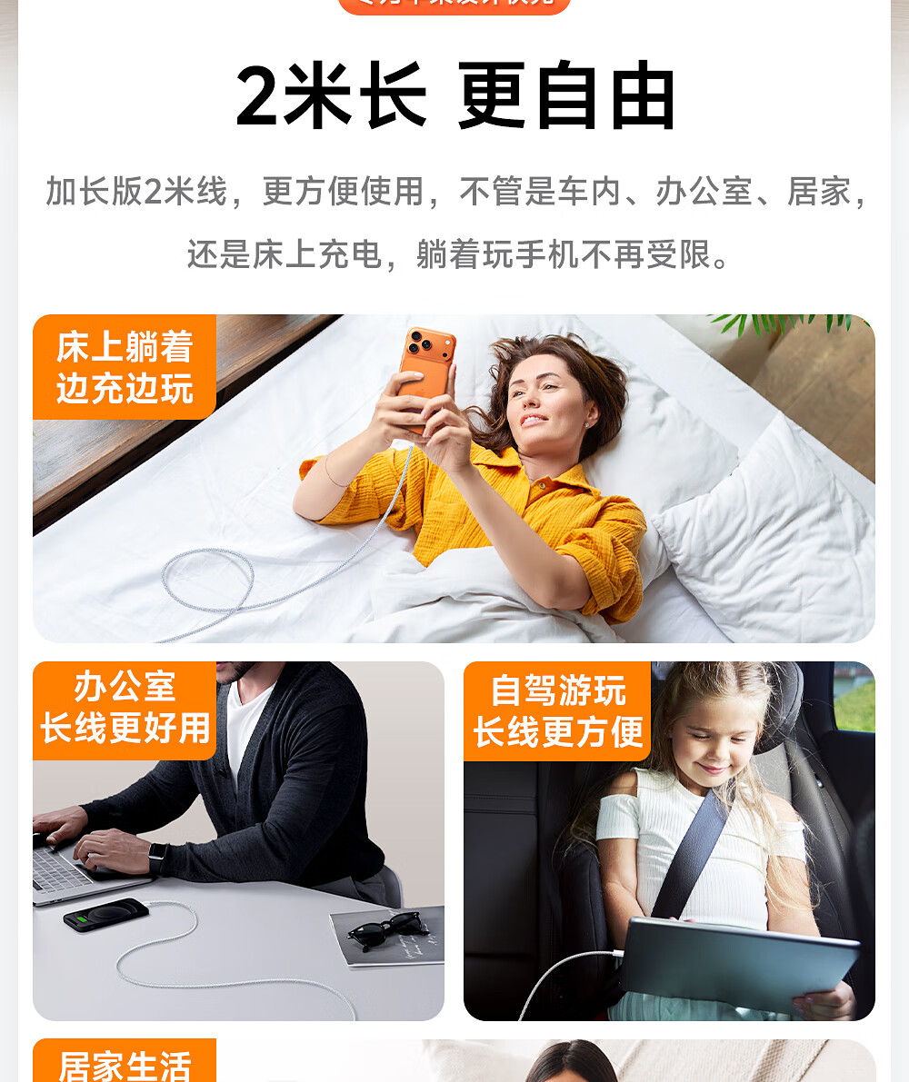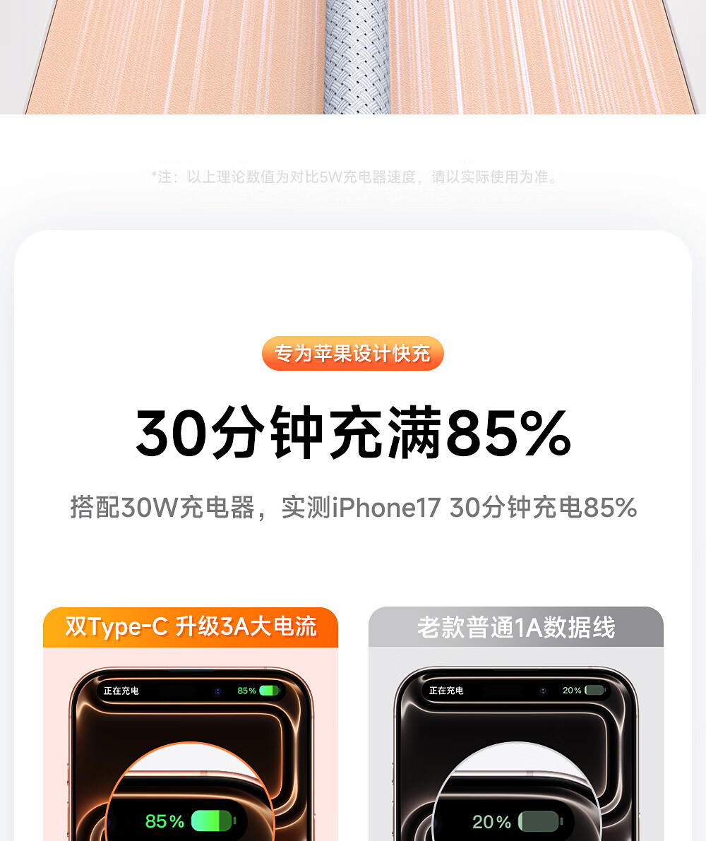 闪魔苹果数据线PD30W/20W快充线type-c to lightning接口iPhone14/13/12/系列ipad air2苹果充电线2.0m