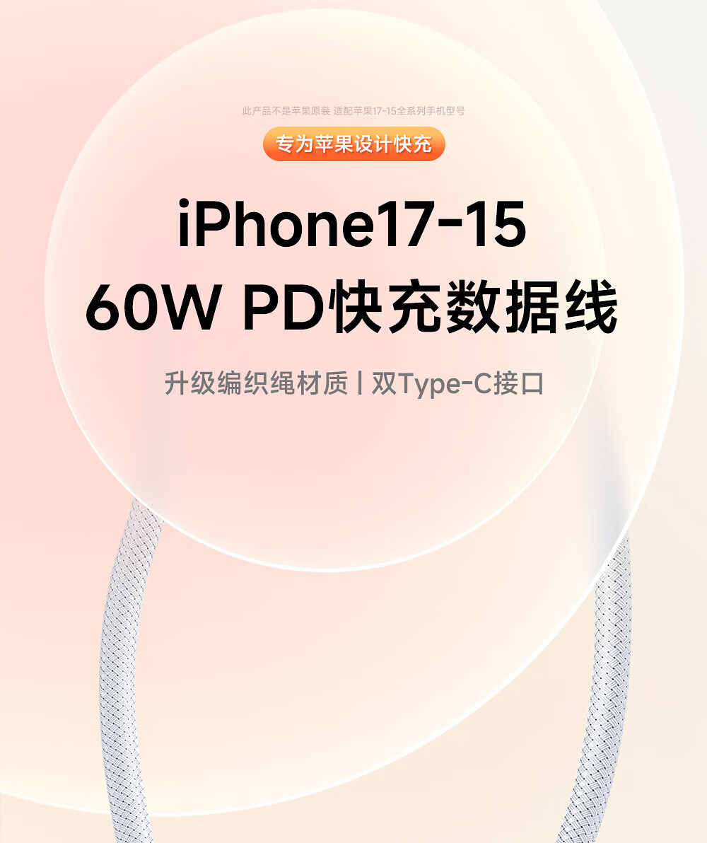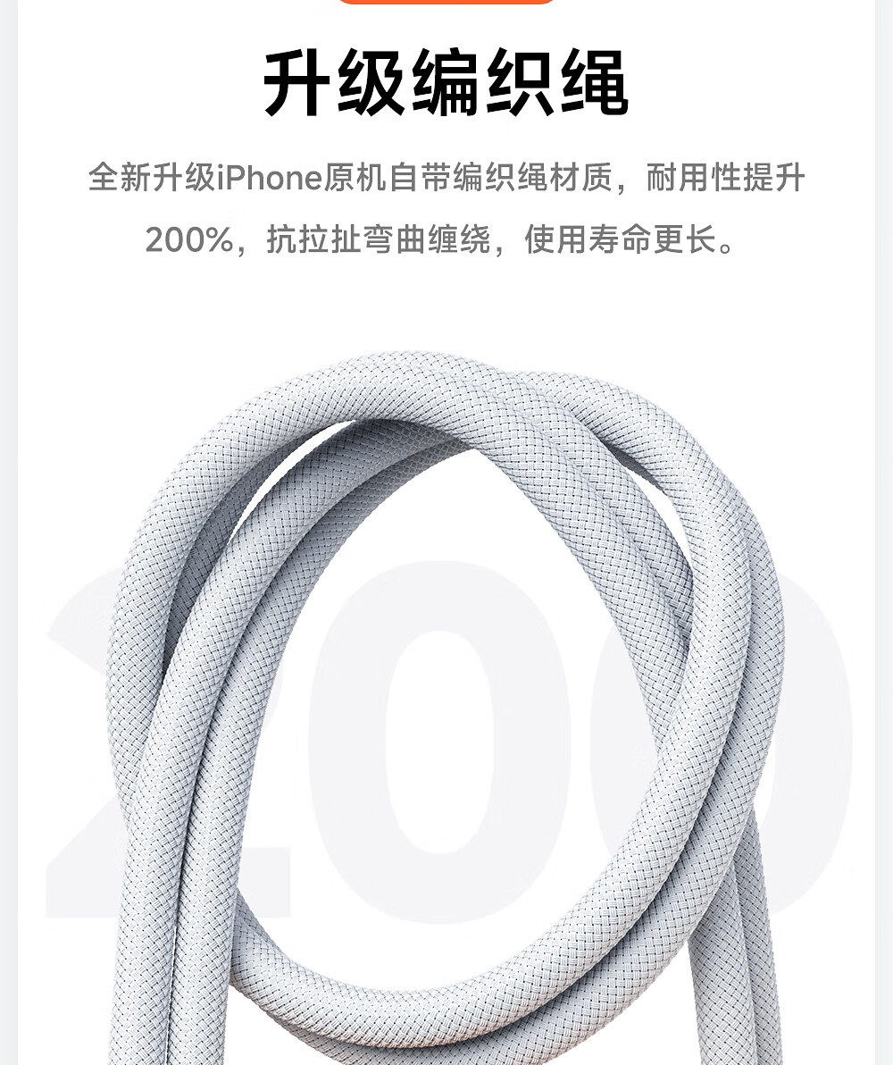 尊匠【直营正品】苹果17/16/15充电线数据线60w适配线原装PD100W快充type-c编织线iPhone16promax pro 苹果17/16/15专用编织线2米