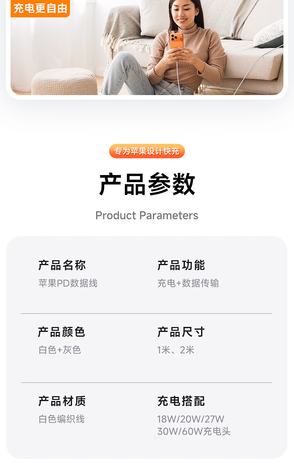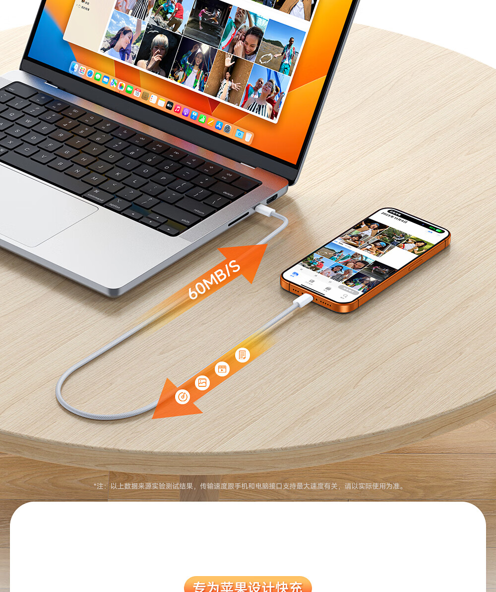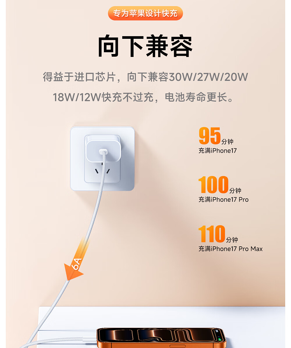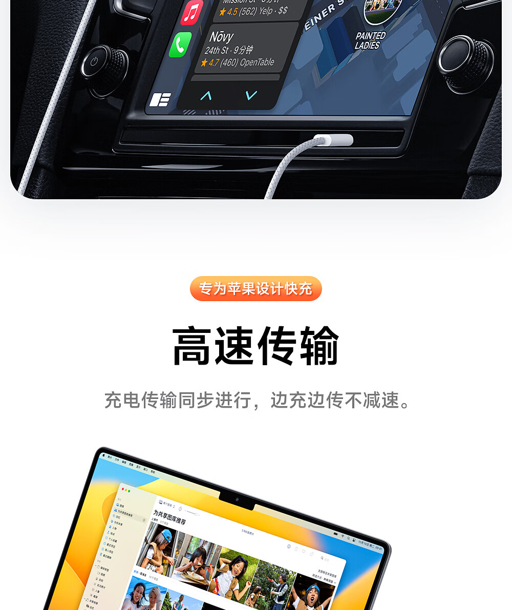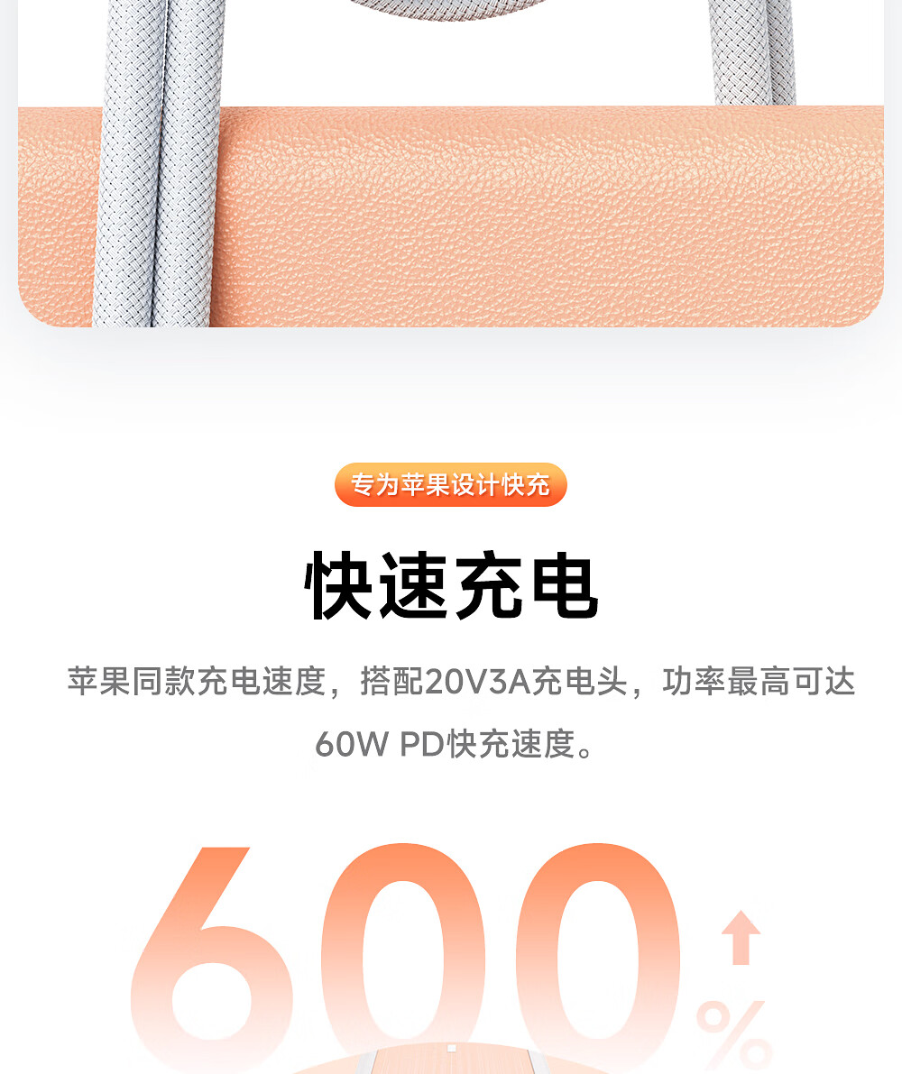 闪魔苹果数据线PD30W/20W快充线type-c to lightning接口iPhone14/13/12/系列ipad air2苹果充电线1.8m