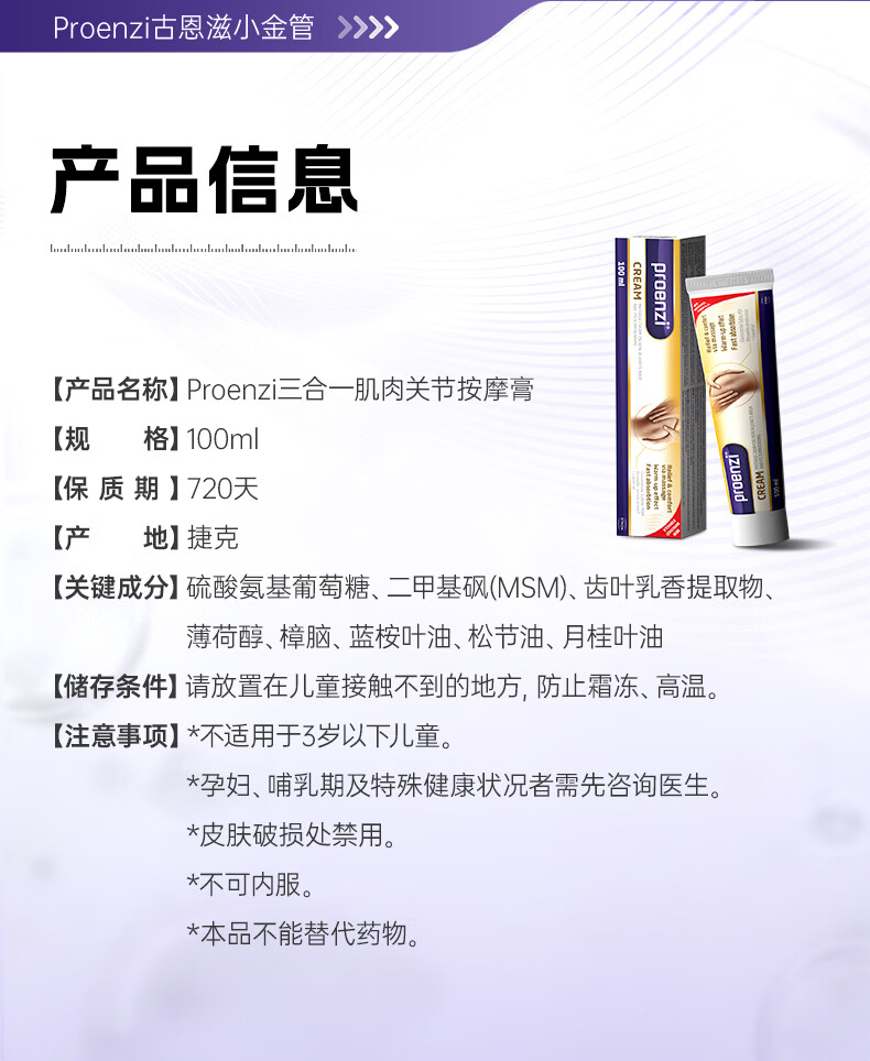 Proenzi古恩滋(史达德)小金管外用氨糖膏 MSM软骨素 关节舒缓养护润滑 【骨胶原补充】小金管+骨胶原口服液 25ml*14瓶
