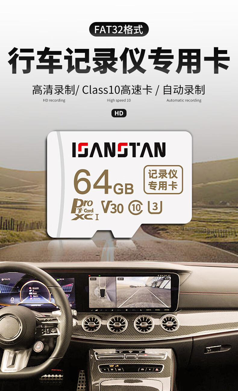 闪立派行车记录仪专用内存卡高速fat32格式C10适用于东风日产/长安/比亚迪/360/领克/大众/盯盯拍tf卡 行车记录仪专用内存卡【64G】送读卡器+卡套