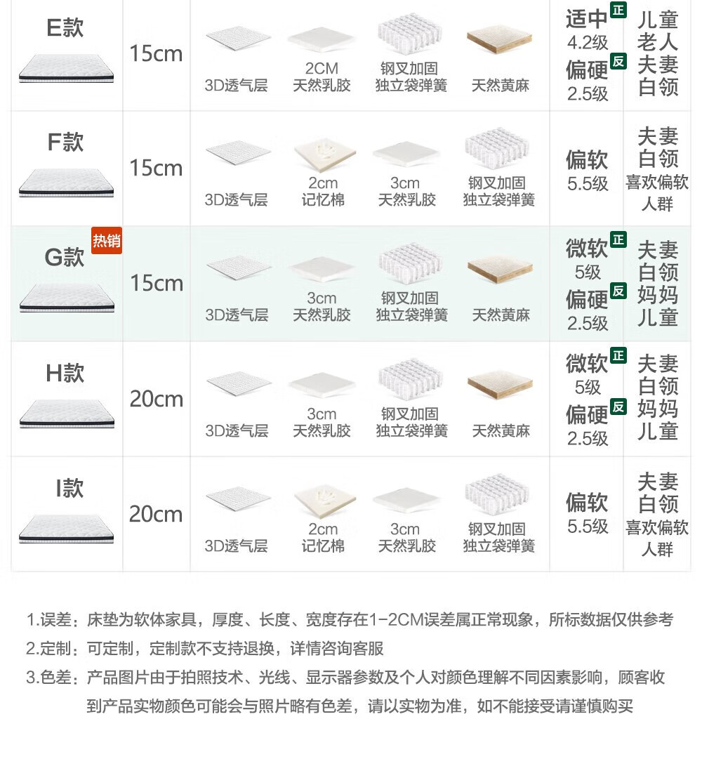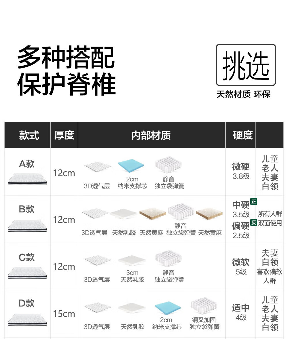 亚朵深睡亚朵床垫15cm薄款独立弹簧席梦思记忆棉乳胶软垫12cm高箱床榻榻米 适中睡感15cm静音独立袋弹簧+乳胶 1800mm*2000mm