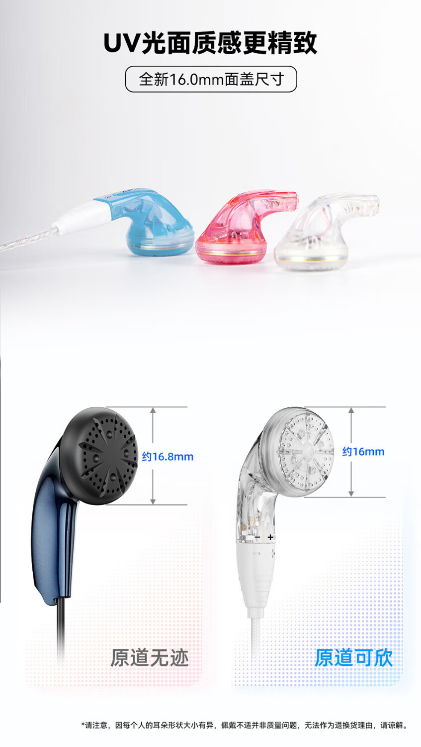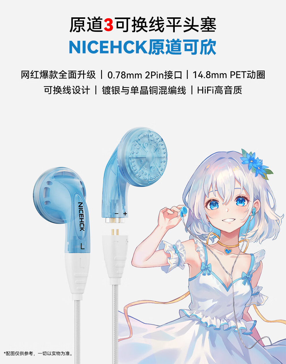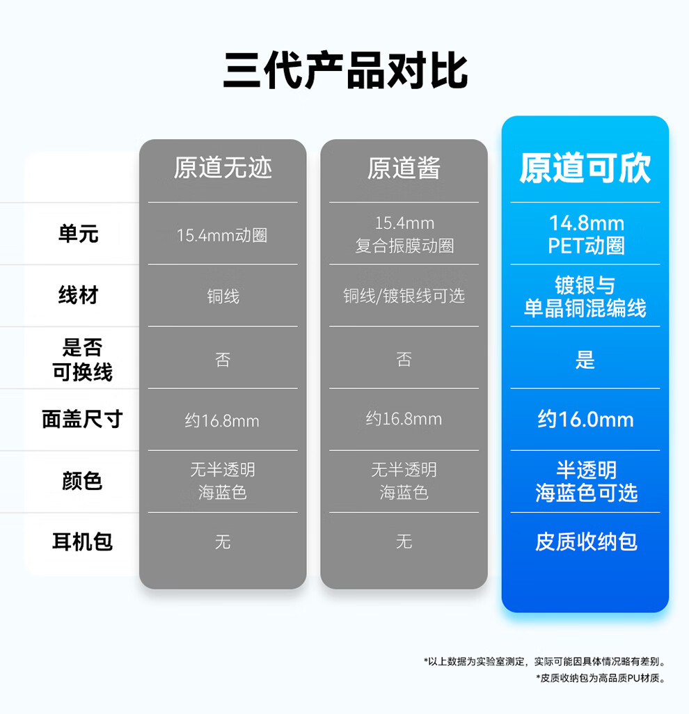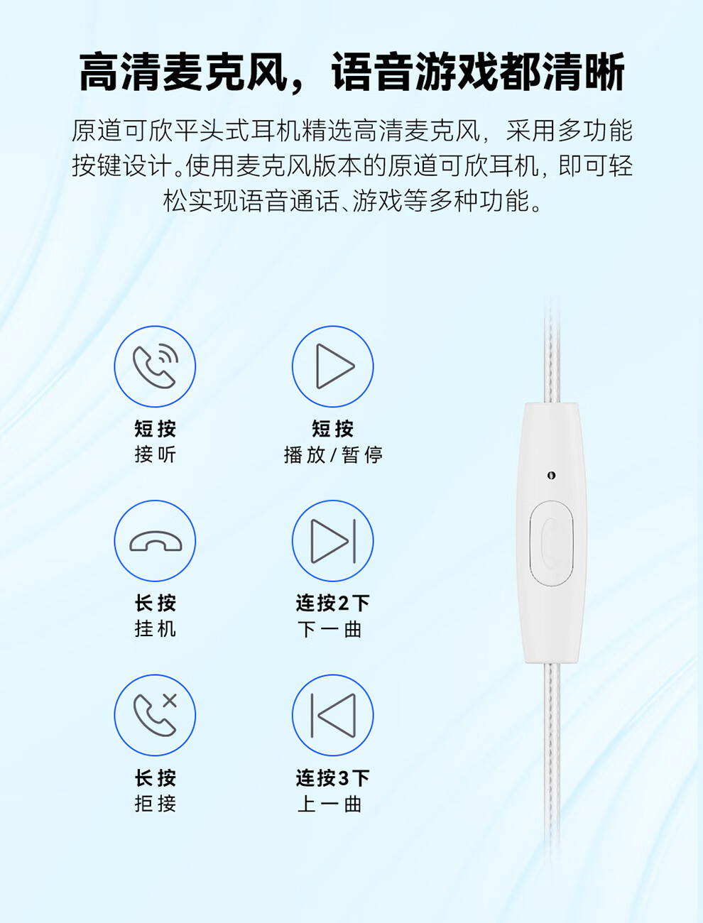 原道-原道可欣第三代平头塞更小尺寸佩戴舒适可换线HiFi带麦线控耳机 【原道可欣】海蓝3.5mm无麦