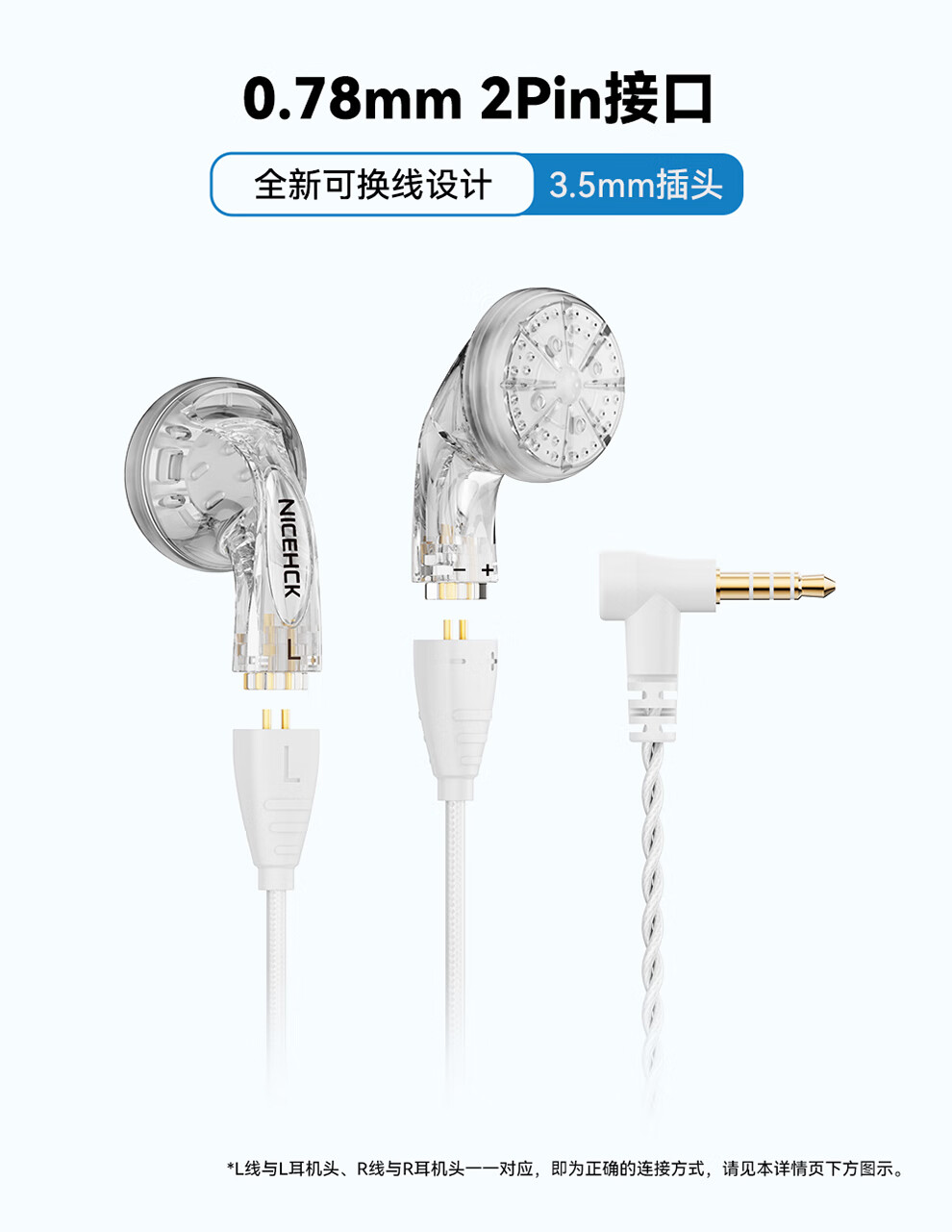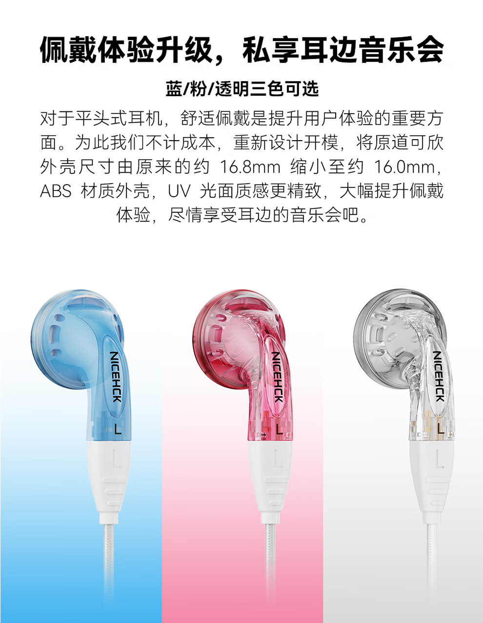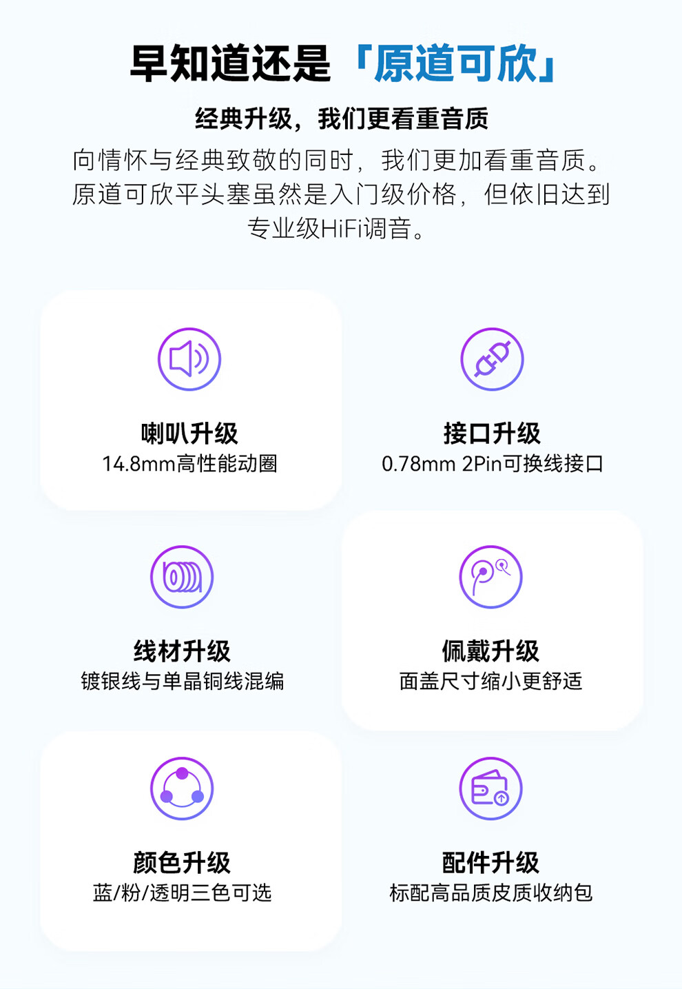 原道-原道可欣第三代平头塞更小尺寸佩戴舒适可换线HiFi带麦线控耳机 【原道可欣】海蓝3.5mm无麦