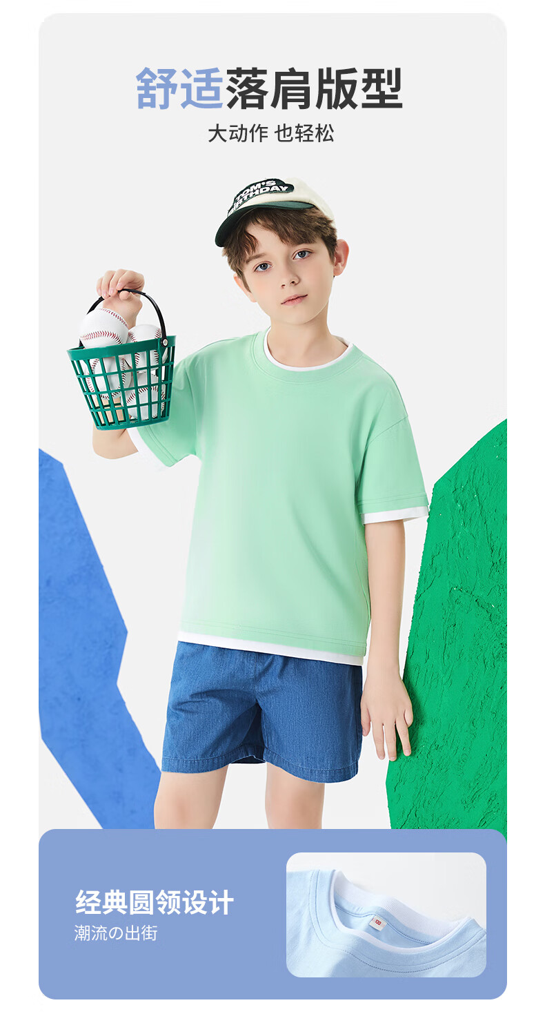 真维斯男童短袖t恤儿童纯棉运动半袖中大童夏装男孩夏季衣服帅气童装 【100%棉两件装】绿 冰块柠檬+米白 不忘记绿 110