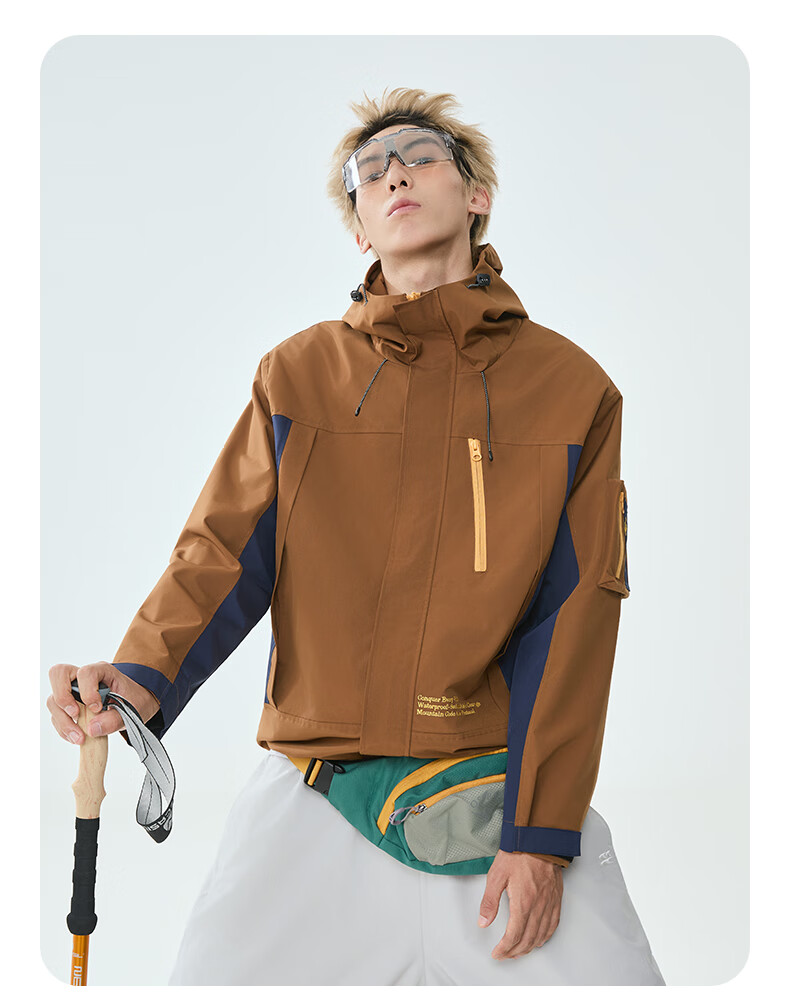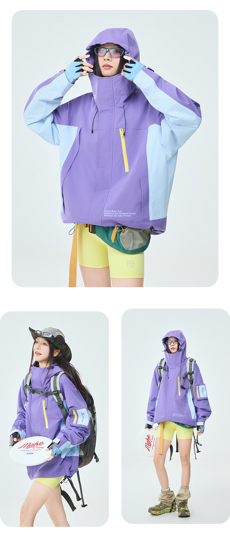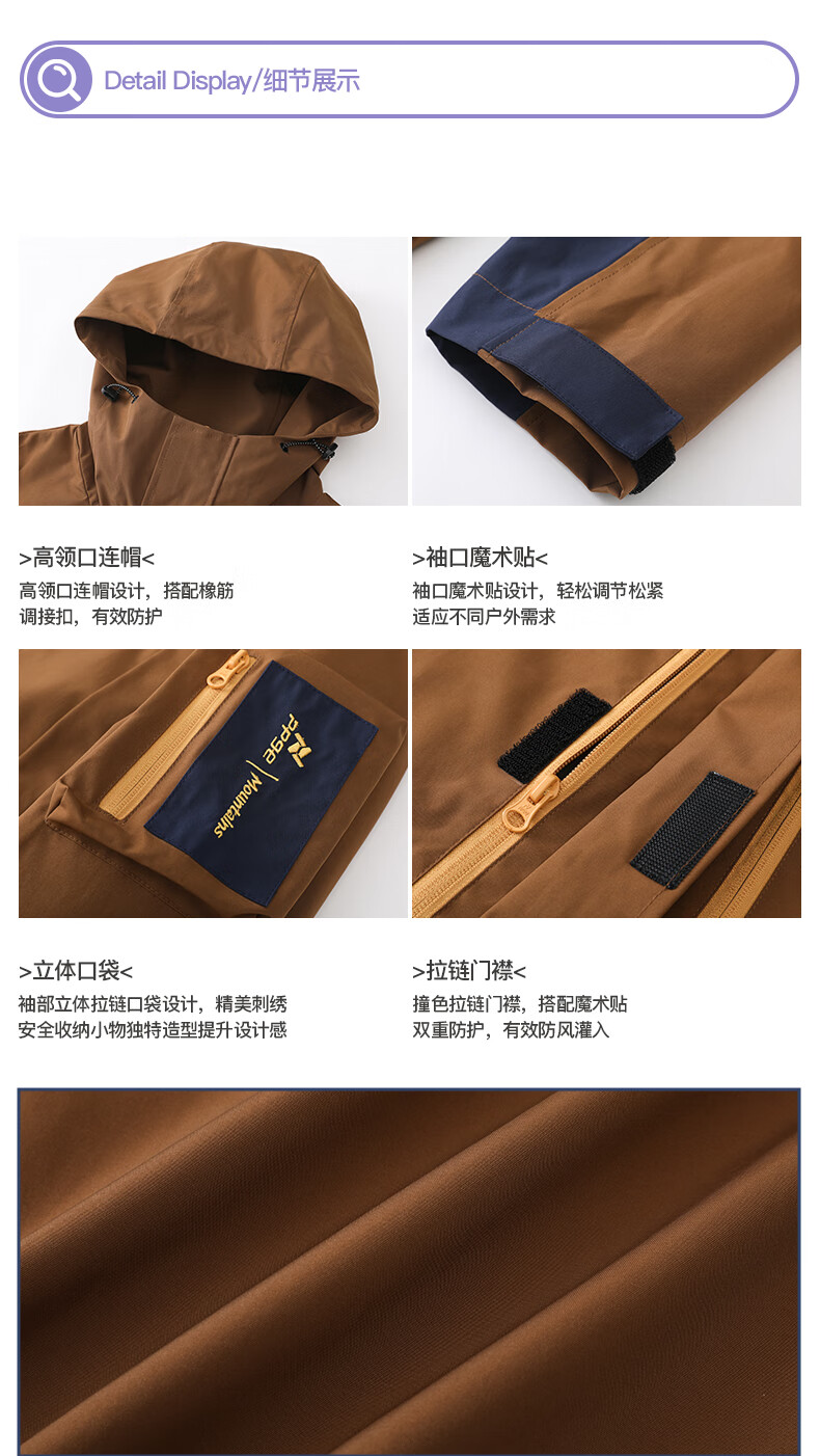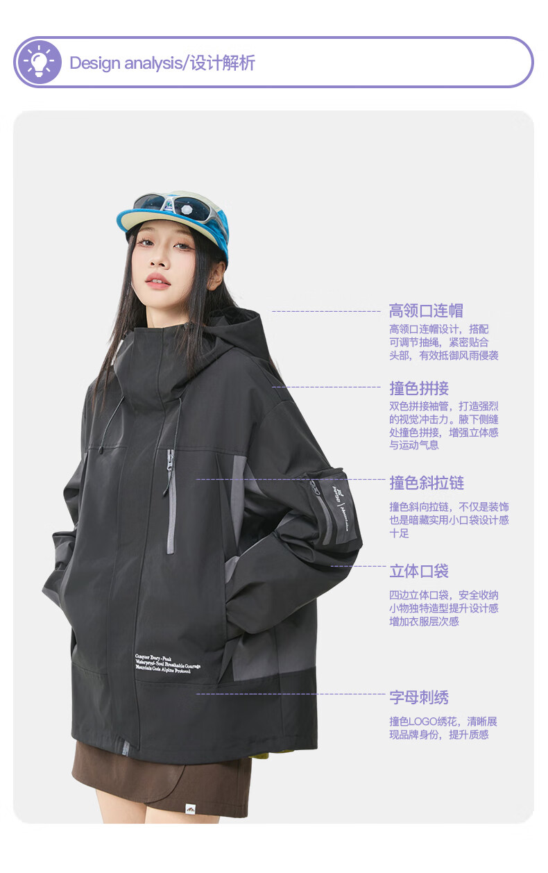 PPGE冲锋夹克防风防泼水户外外套登山衣服男女同款可调节抽绳运动夹克 墨陨黑 2XL