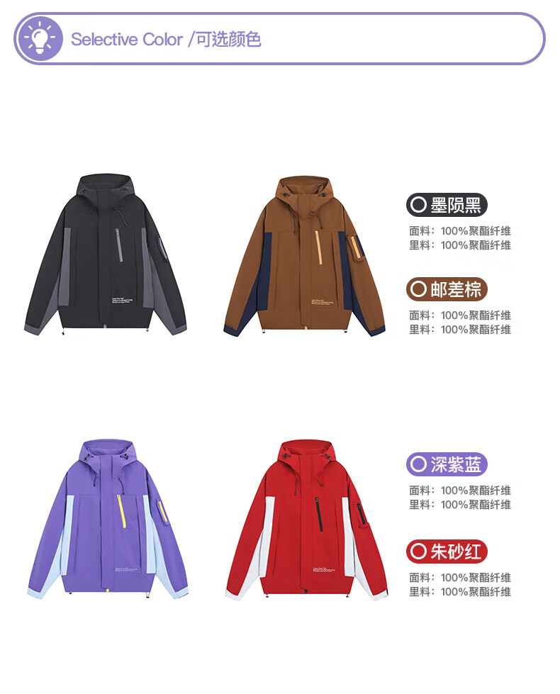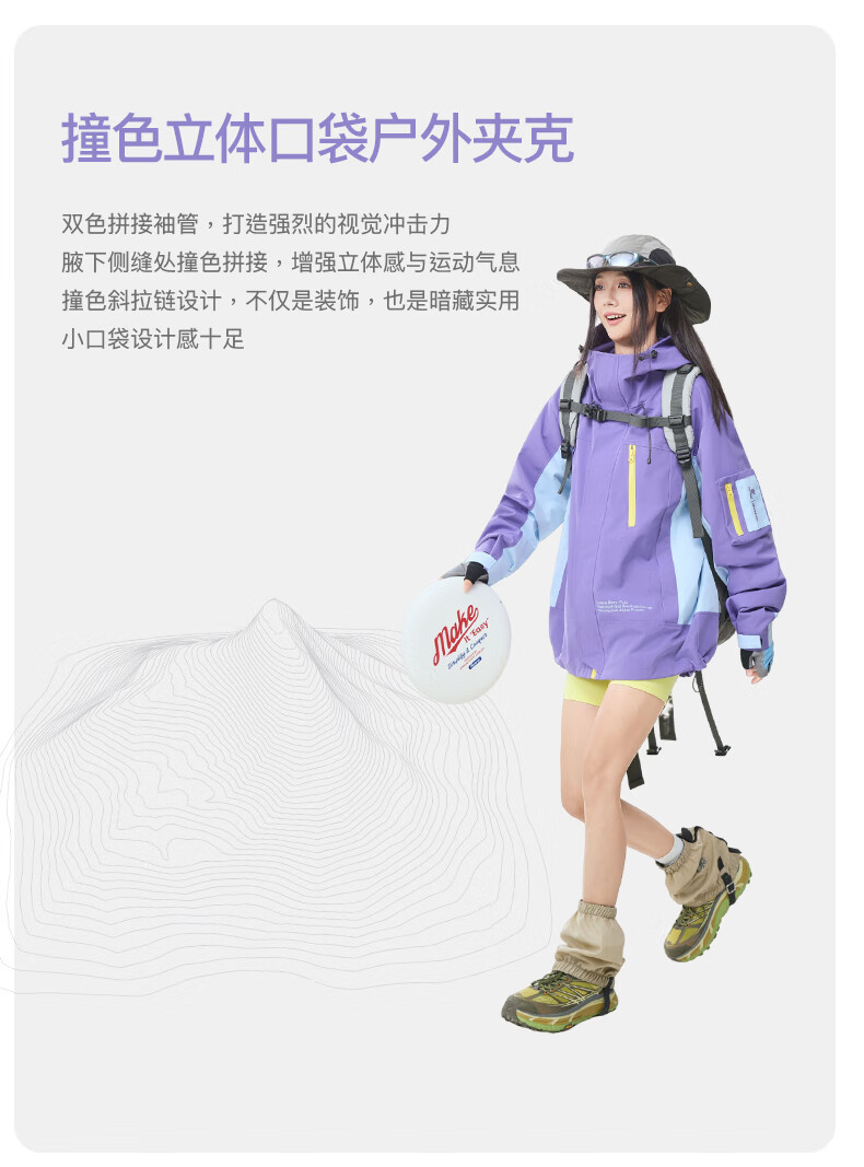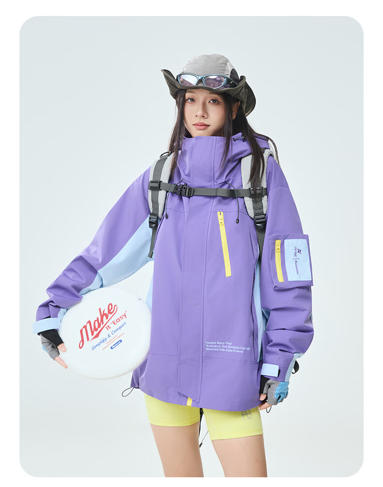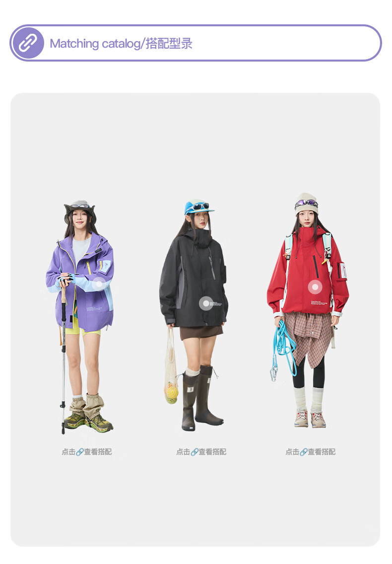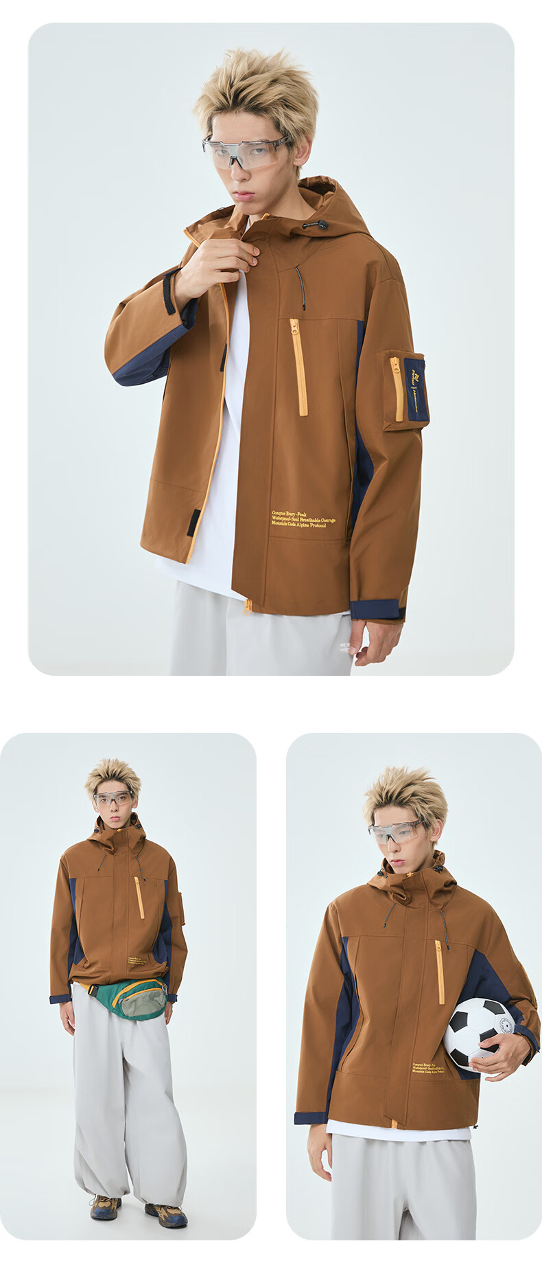 PPGE冲锋夹克防风防泼水户外外套登山衣服男女同款可调节抽绳运动夹克 墨陨黑 2XL