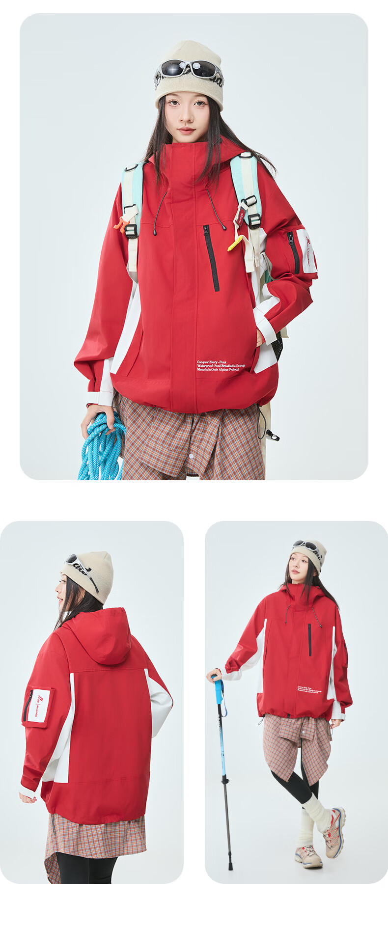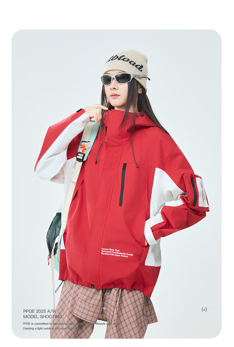 PPGE冲锋夹克春秋防风防泼水户外登山衣服外套男女同款斜拉链运动夹克 赤狰红 软壳外套 XL