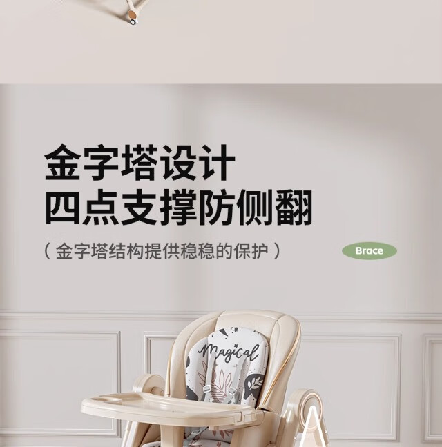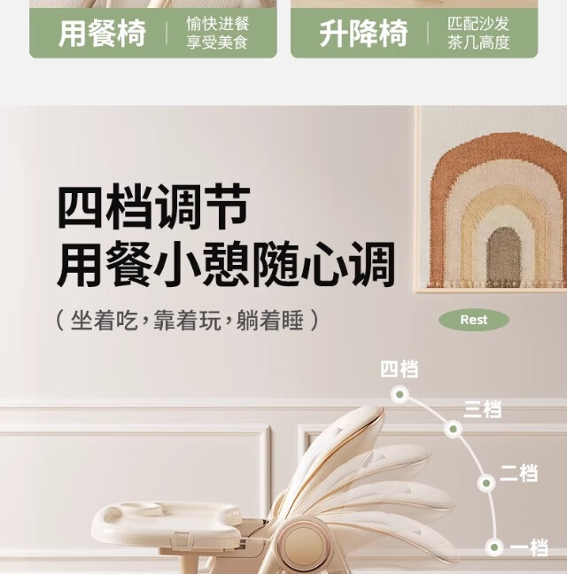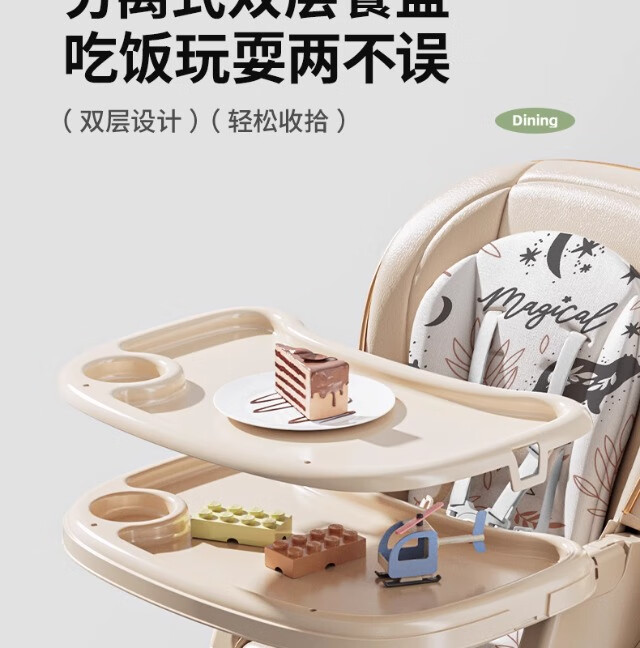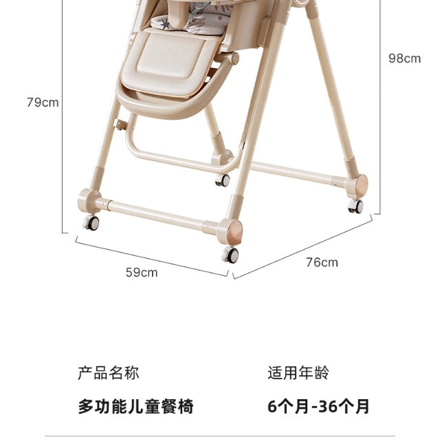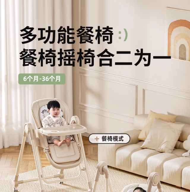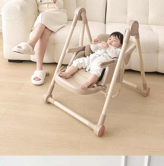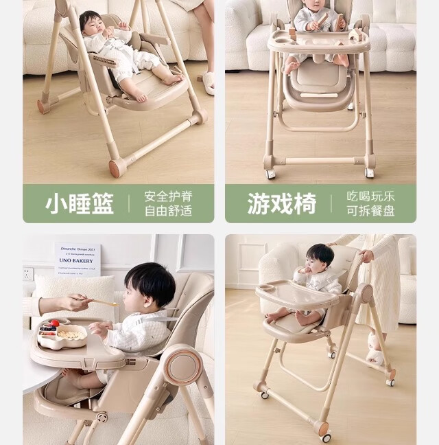 巧乐熊宝宝餐椅摇椅二合一婴幼儿童0-6岁防侧翻多功能可折叠成长餐桌椅 麦丁米pro【万向轮+摇篮】S700免安装