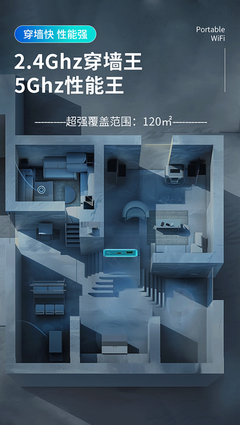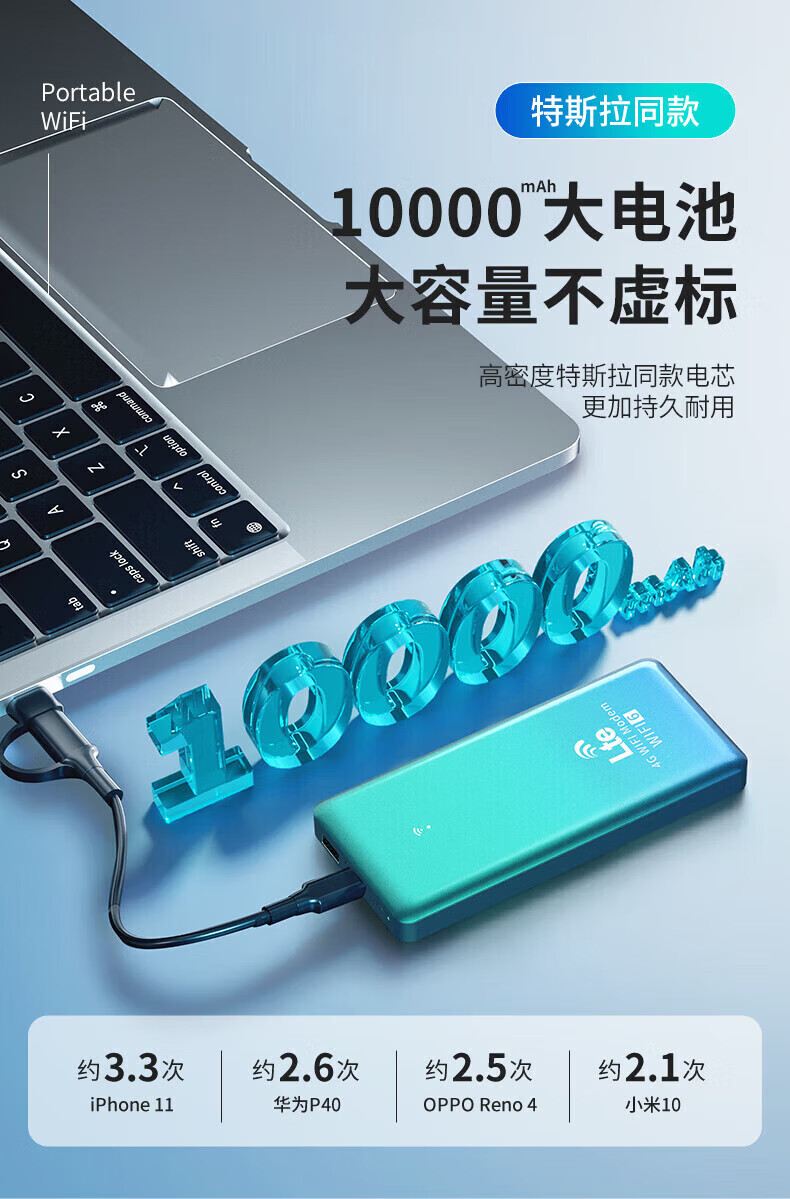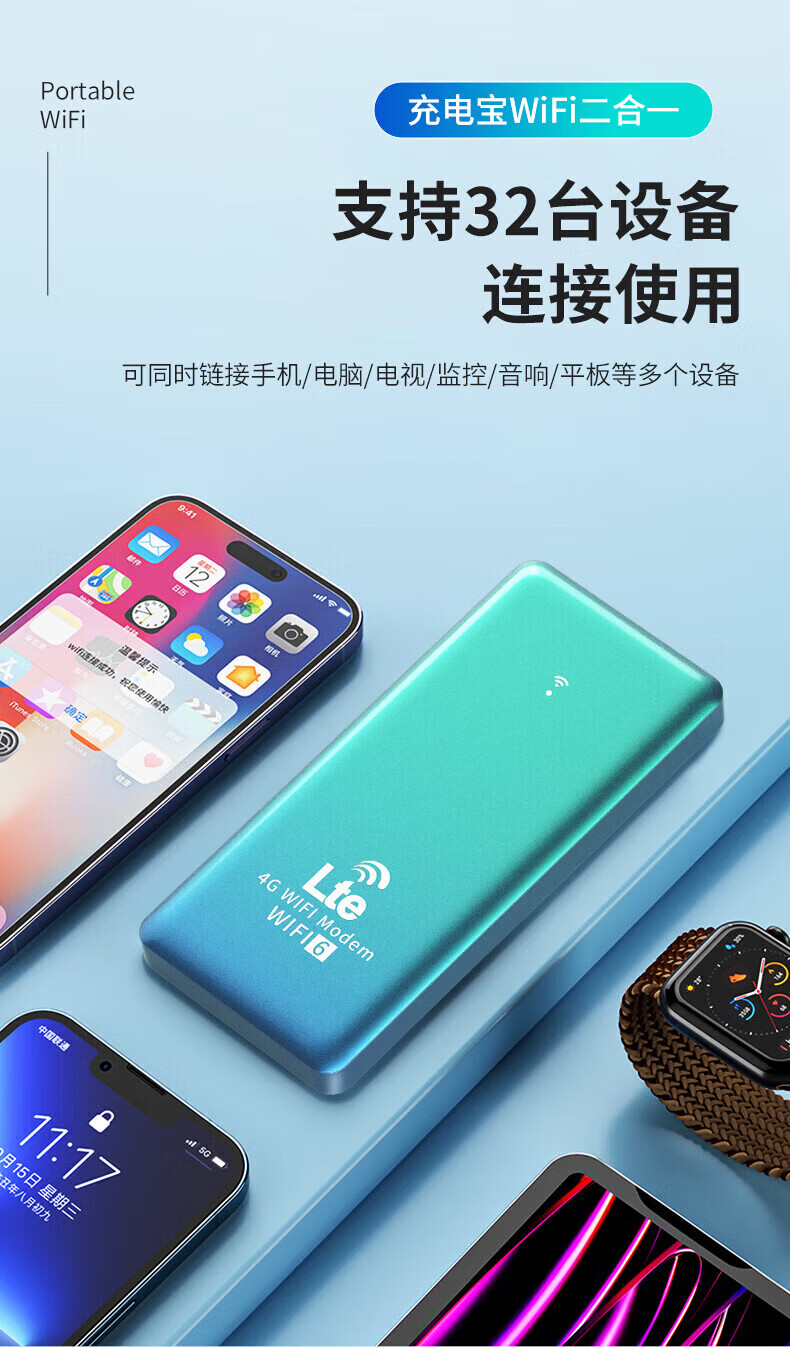 乔锐斯移动wifi随身2025款全国通用5Ghz无限流量官方正品全网三网通用无月租无线网卡免插卡充电宝二合一 【下单送1500G】1万毫安可充电5Ghz-蓝色