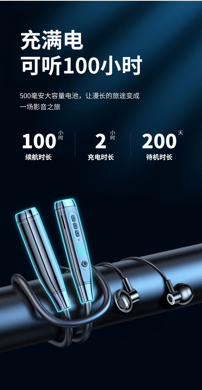 【优选直发】多普尼电量显示大电量双耳长续航蓝牙耳机无线颈挂脖 【袋装+线+说明书】G05挂脖耳机-黑色