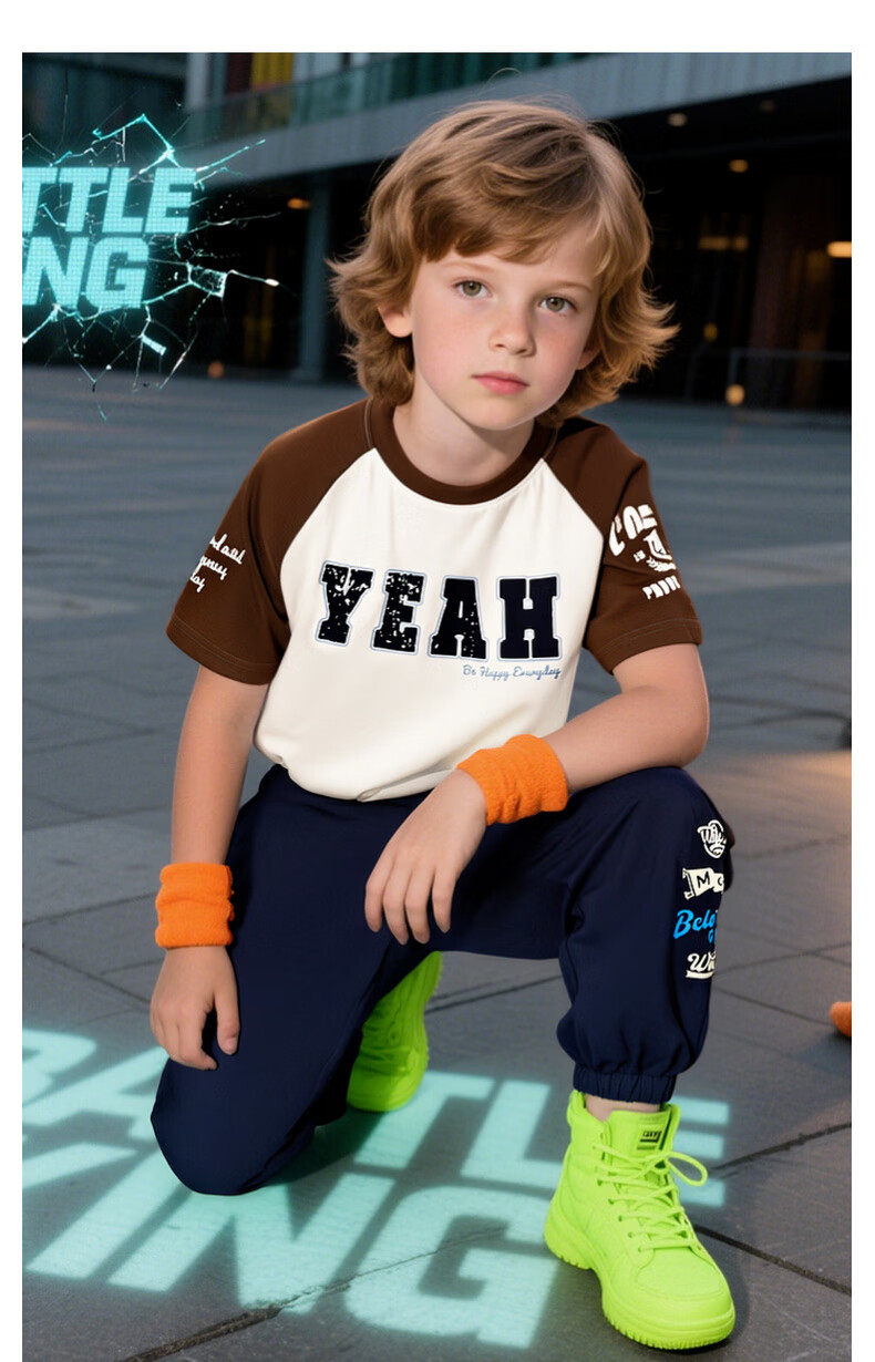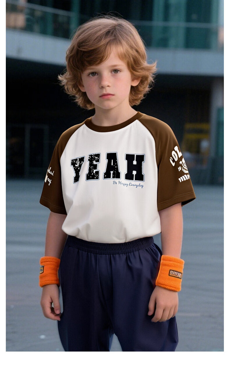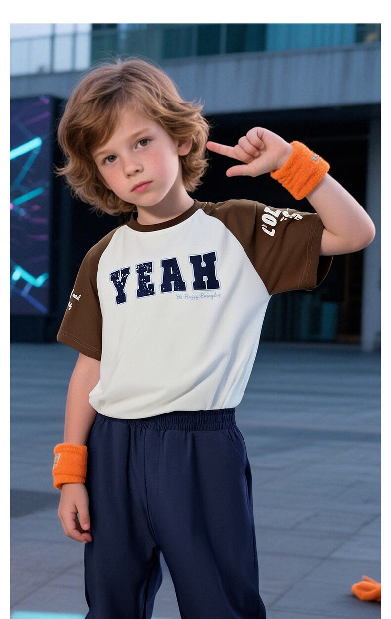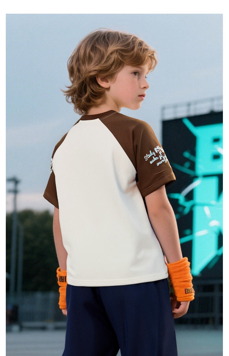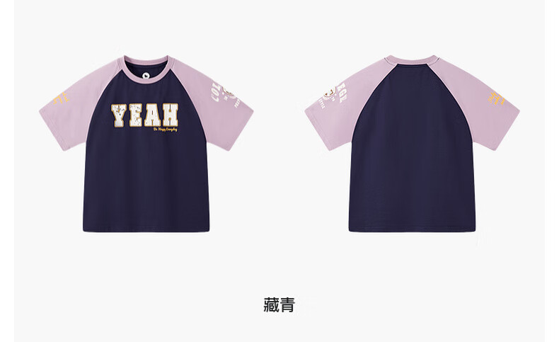马骑顿(MQD)男大童夏季新品学院风插肩袖字母撞色短袖亲肤轻薄T恤 藏青 140