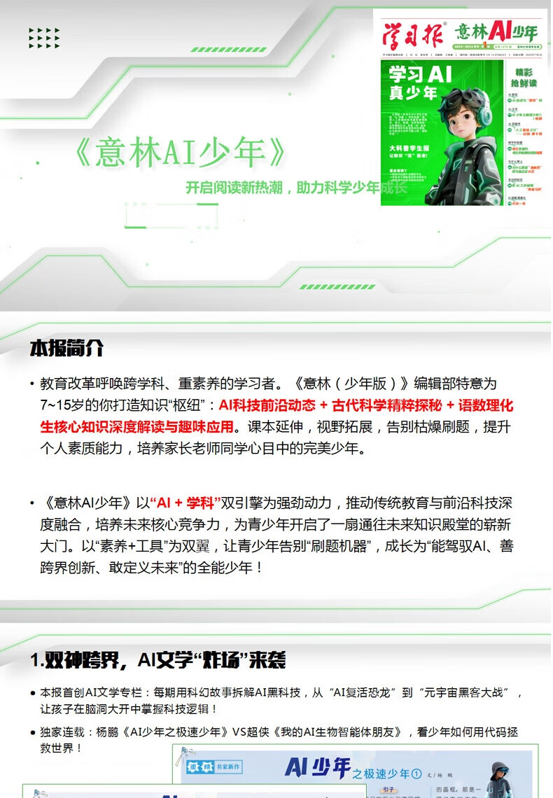 意林AI少年报 2026年跨年订阅 报纸儿童杂志学习报AI科普学科拓展地理语文数学化学物理历史知识画报课本延伸视野拓展 【现货速发】2025年7-12月