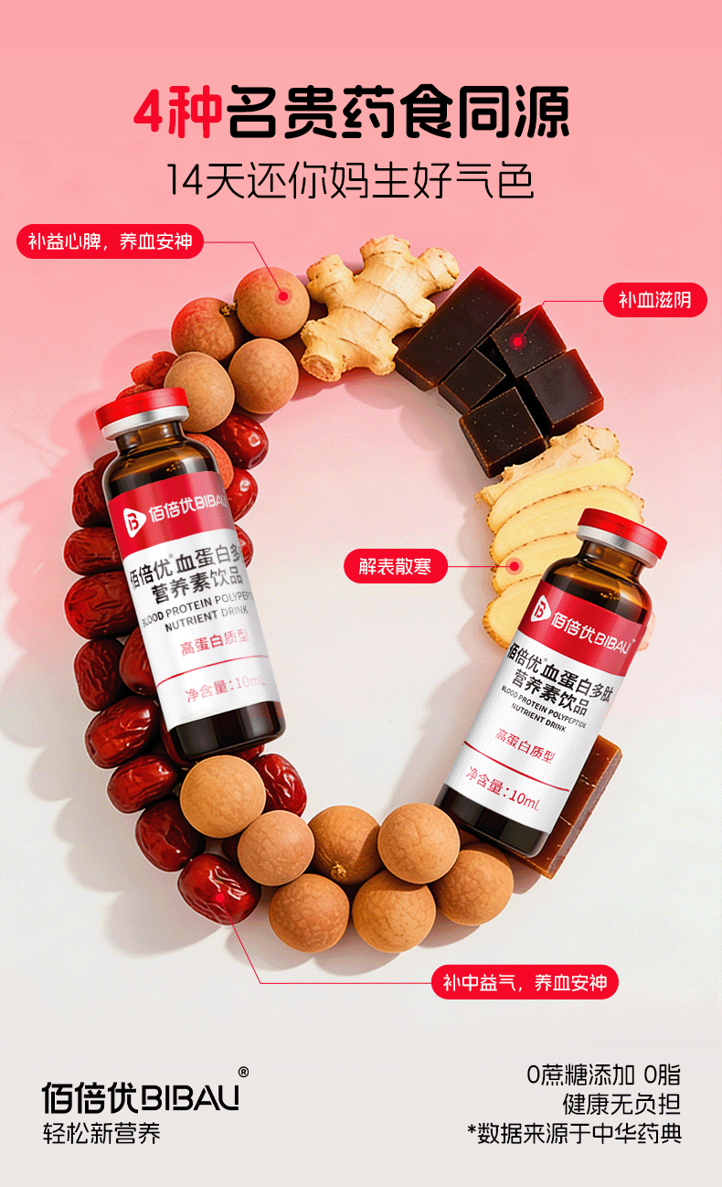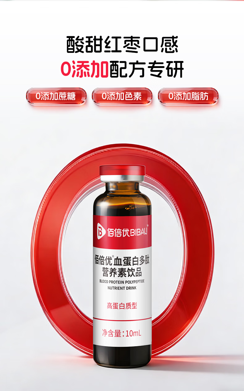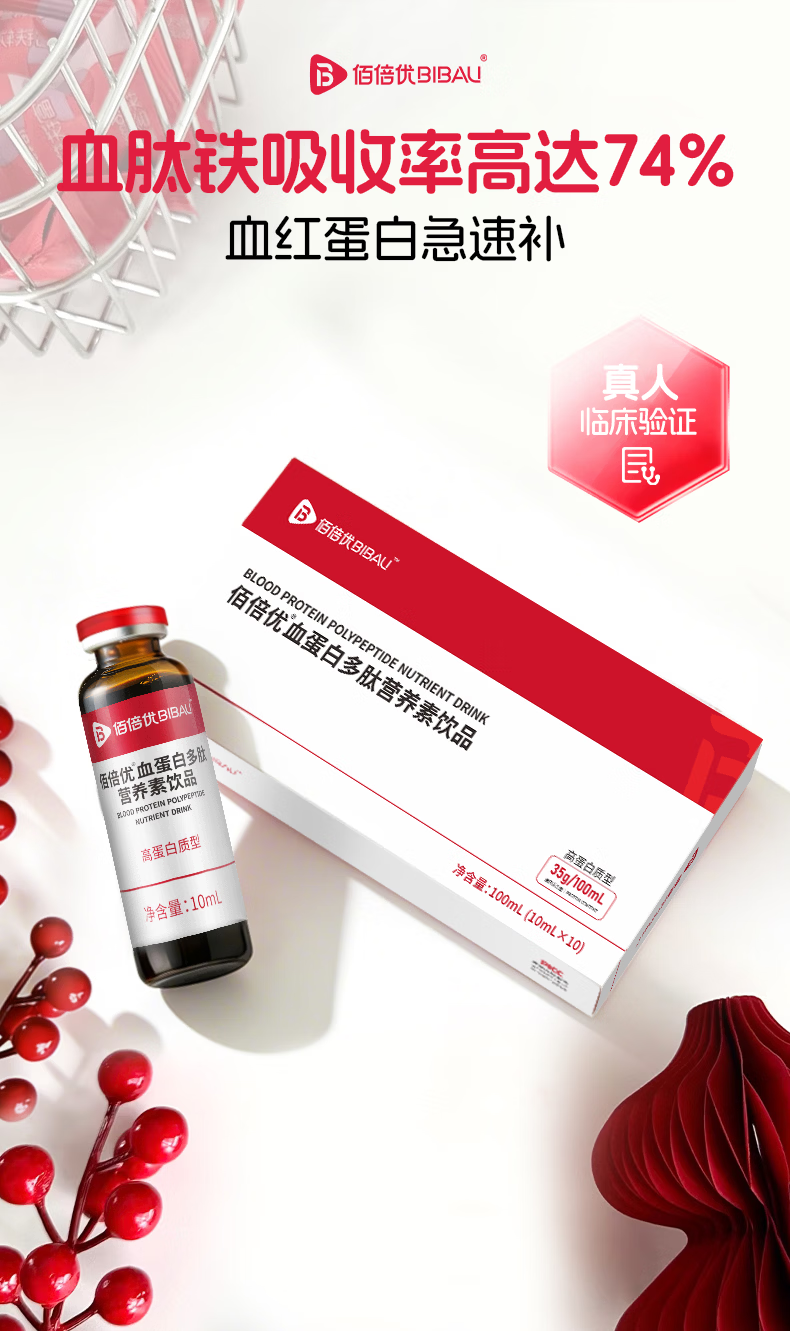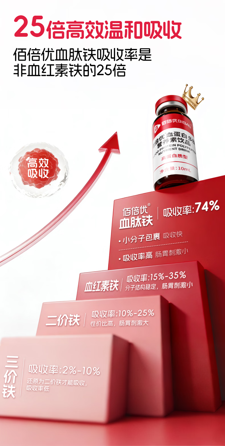 佰倍优临床级补铁补血血蛋白肽 【红润满分】富铁血蛋白肽多肽 10支*4盒